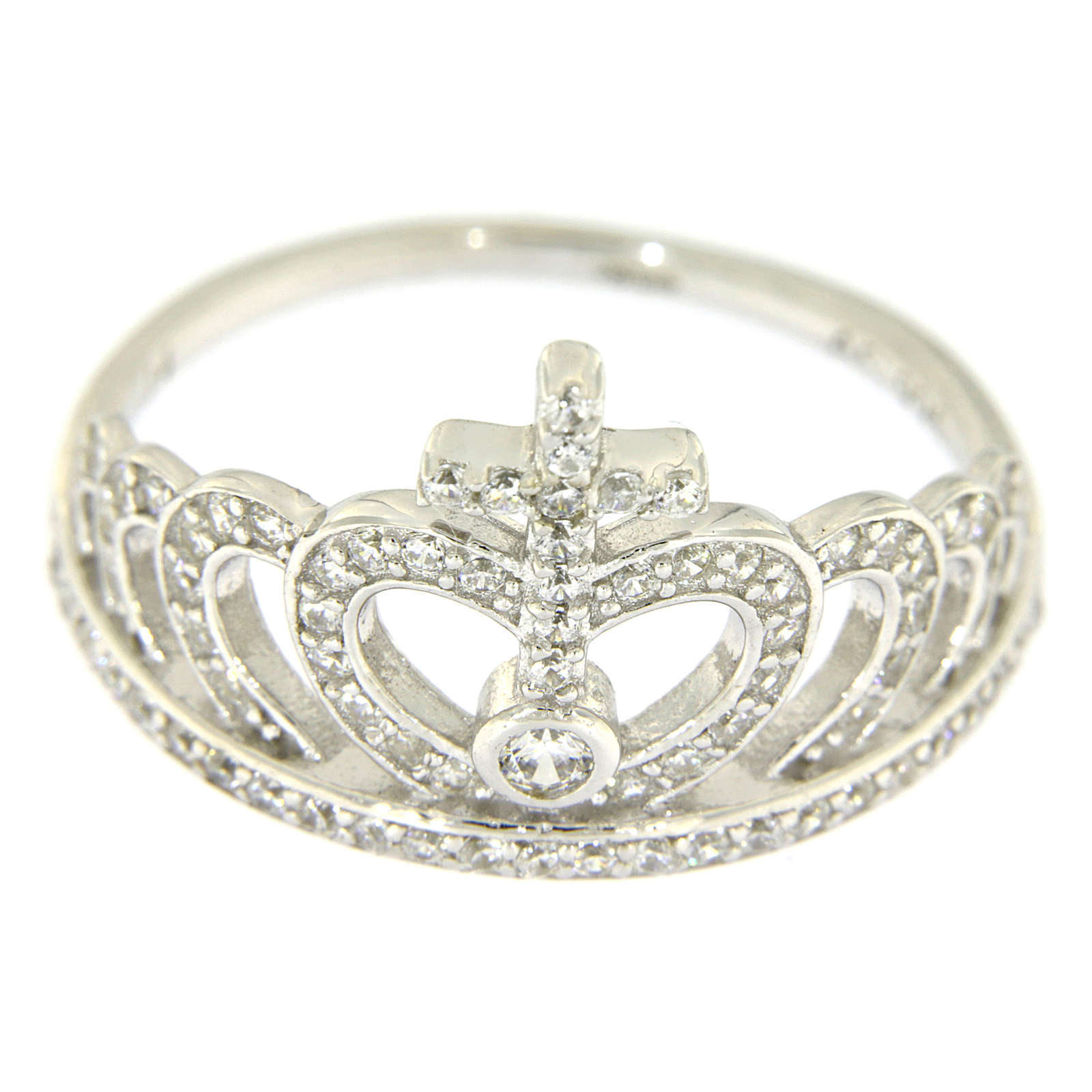 Bague Amen avec couronne et croix argent 925 zircons blancs