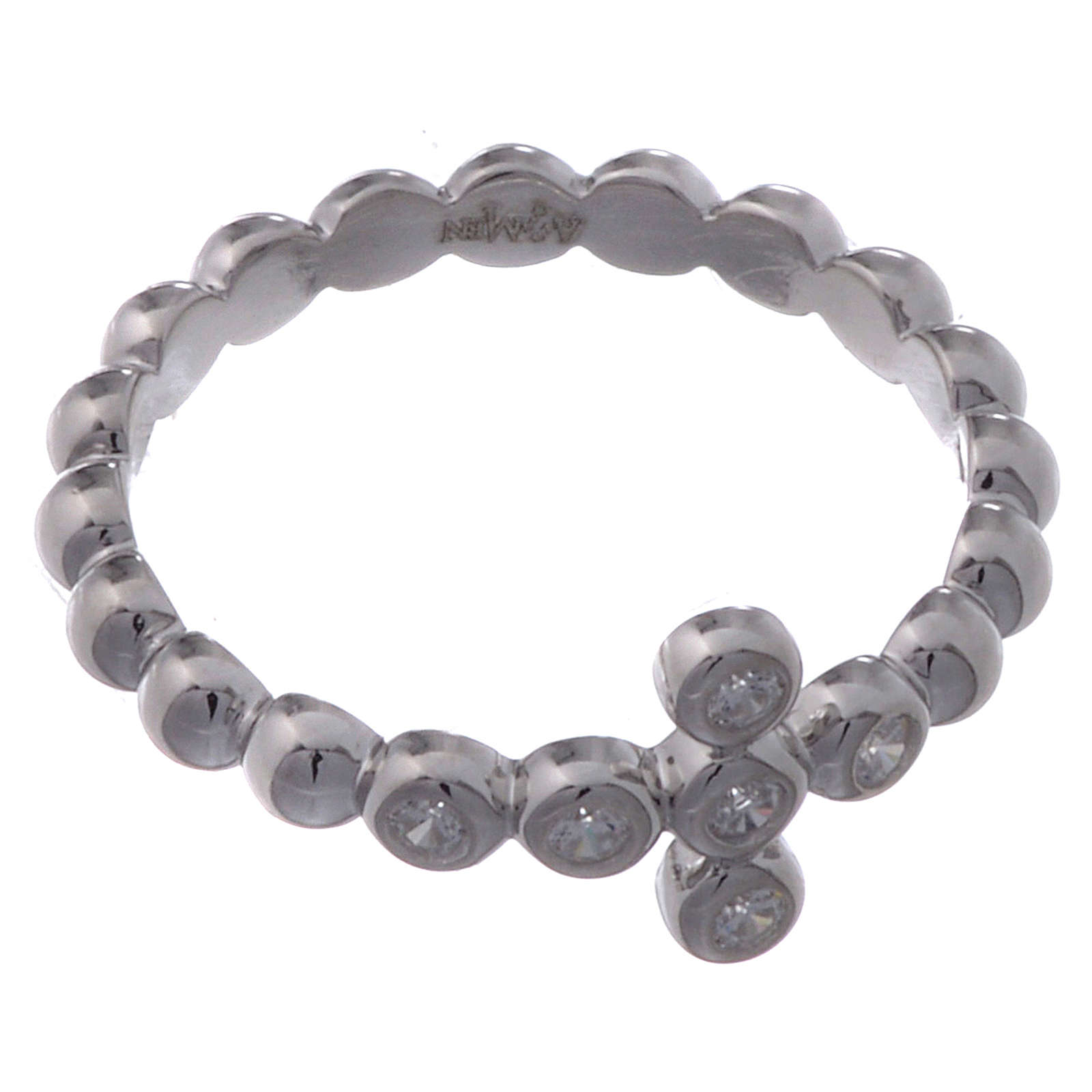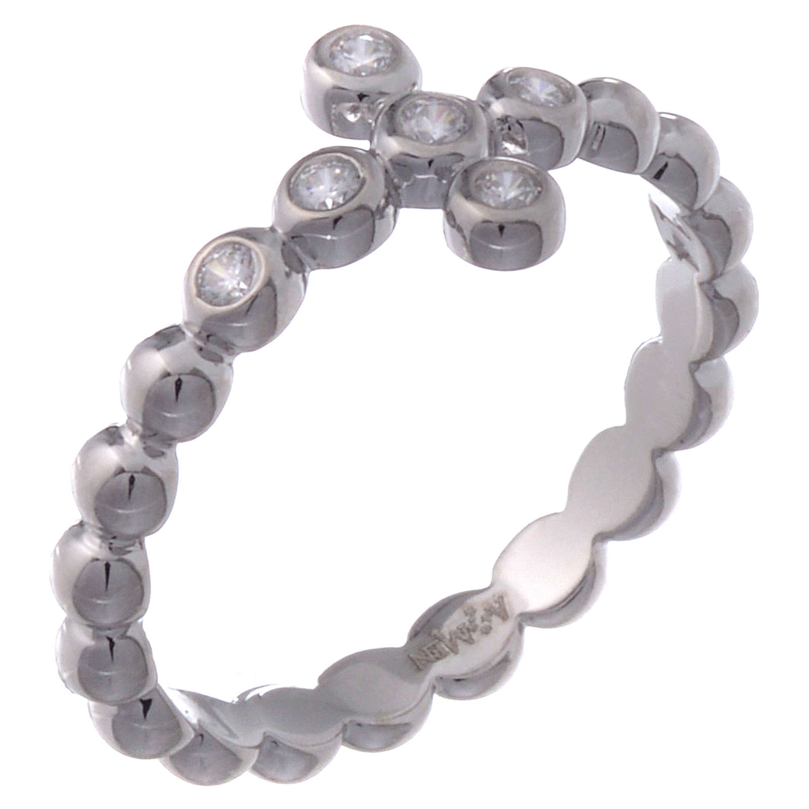 Bague AMEN boules arg 925 blanc zircons blancs. Bague de prière en argent 925 blanc travaillé de manière artisanale dans l'entreprise productrice de bijoux AMEN en Italie.