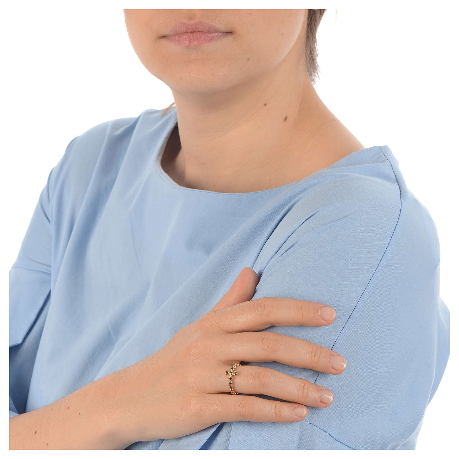 Bague AMEN boules arg 925 doré zircons verts. Bague de prière en argent 925 doré travaillé de manière artisanale dans l'entreprise productrice de bijoux AMEN en Italie.