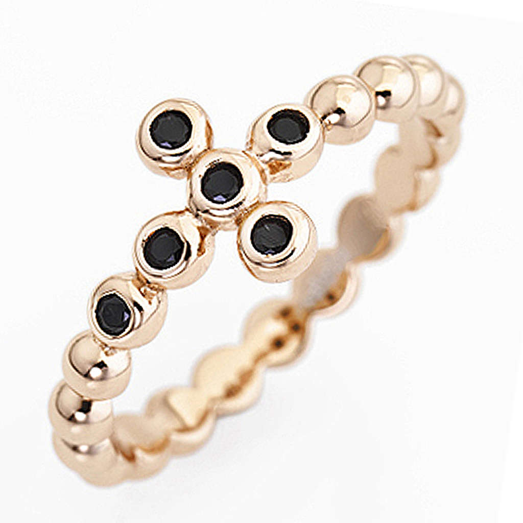 Bague AMEN boules arg 925 rosé zircons noirs. Bague de prière en argent 925 rosé travaillé de manière artisanale dans l'entreprise productrice de bijoux AMEN en Italie.