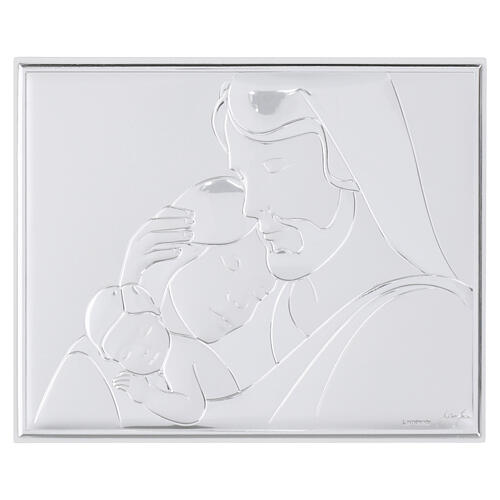 Tableau Sainte Famille en argent bilaminé, finition argent 15x20 cm