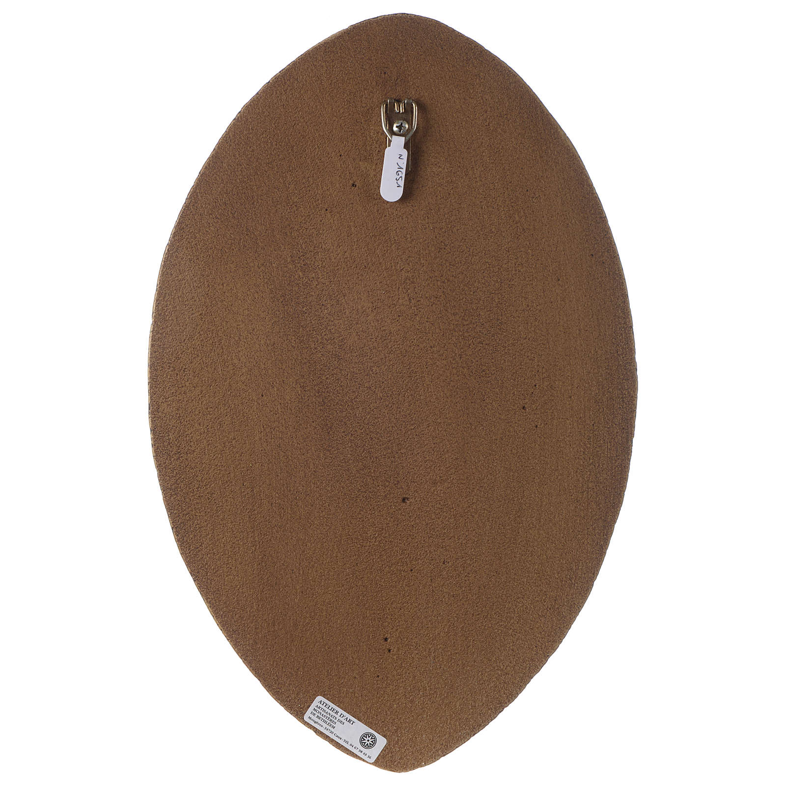 Bas-relief in pierre des Pyrénées représentant Jésus dans son splendeur qui demande aux hommes de s'en remettre complètement à lui. Cette image renvoie à l'idée d'abandon dans les bras de Jésus, le vivant. Gloire et pouvoir qui attirent l'humanité. Ce tableau est réalisé à la main par les Soeurs du monastère de Bethléem en France.