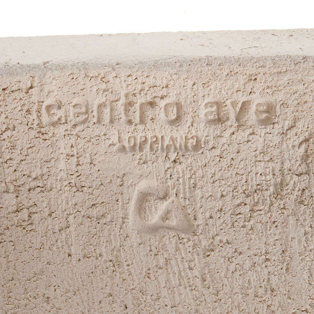 Bas relief religieux en argile réfractaire qui reproduit la Vierge à l'enfant stylisée. Bas relief réalisé à la main en Italie en argile réfractaire blanche. Le bas relief est moulé et après cuit à plus de 1000°C. Le travail et la décoration de ce bas relief sont complètement réalisés à la main pour lui donner des lignes agréables et élégantes. Produit d'haute qualité de l'atelier Ave de Loppiano (Florance).