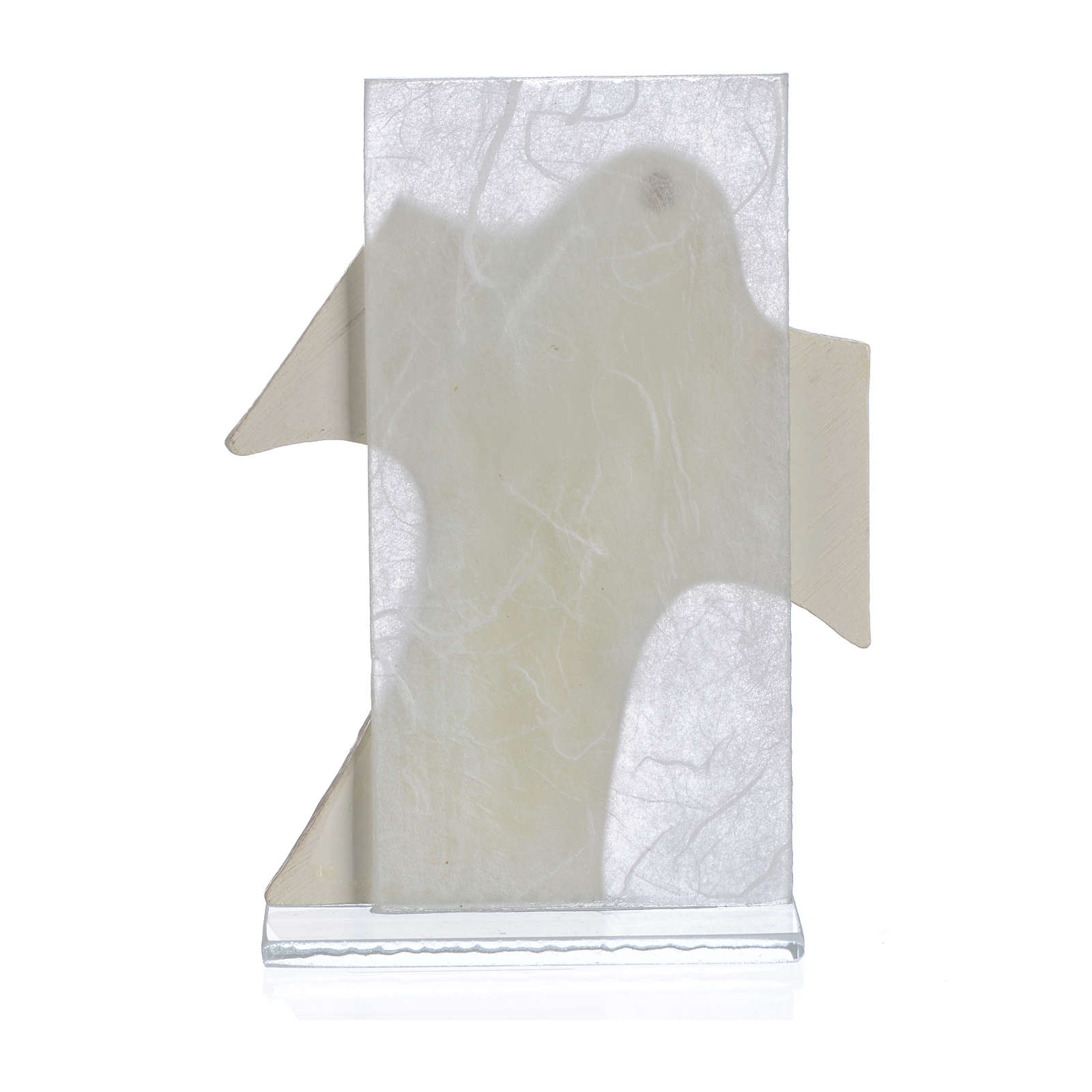 Disponibilité immédiate Cadre Communion Fille blanc 11,5x8 cm. Petit cadre à poser réalisé en poudre de marbre avec paillettes en cristal. À l'arrière de la croix se trouve un verre cristallin avec découpage de couleur blanche.