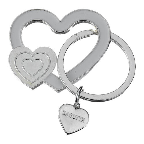 Porte-clés cœur émaillé blanc et petit cœur Bagutta
