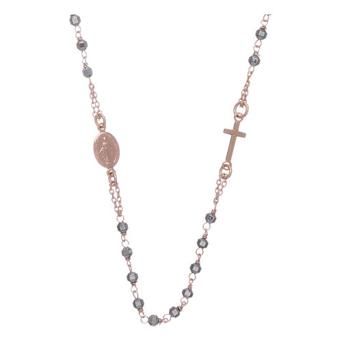 Chapelet tour de cou cuivré et perles hématite 3,7 mm. Chapelet tour de cou en argent 925 cuivré avec perles en hématite de 3,7 mm. Modèle unisex avec fermoir mousqueton et chaînette de réglage, réalisé en Italie.