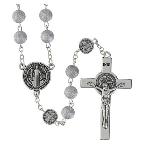 Chapelet Saint Benoît grains couleur argent 8 mm.