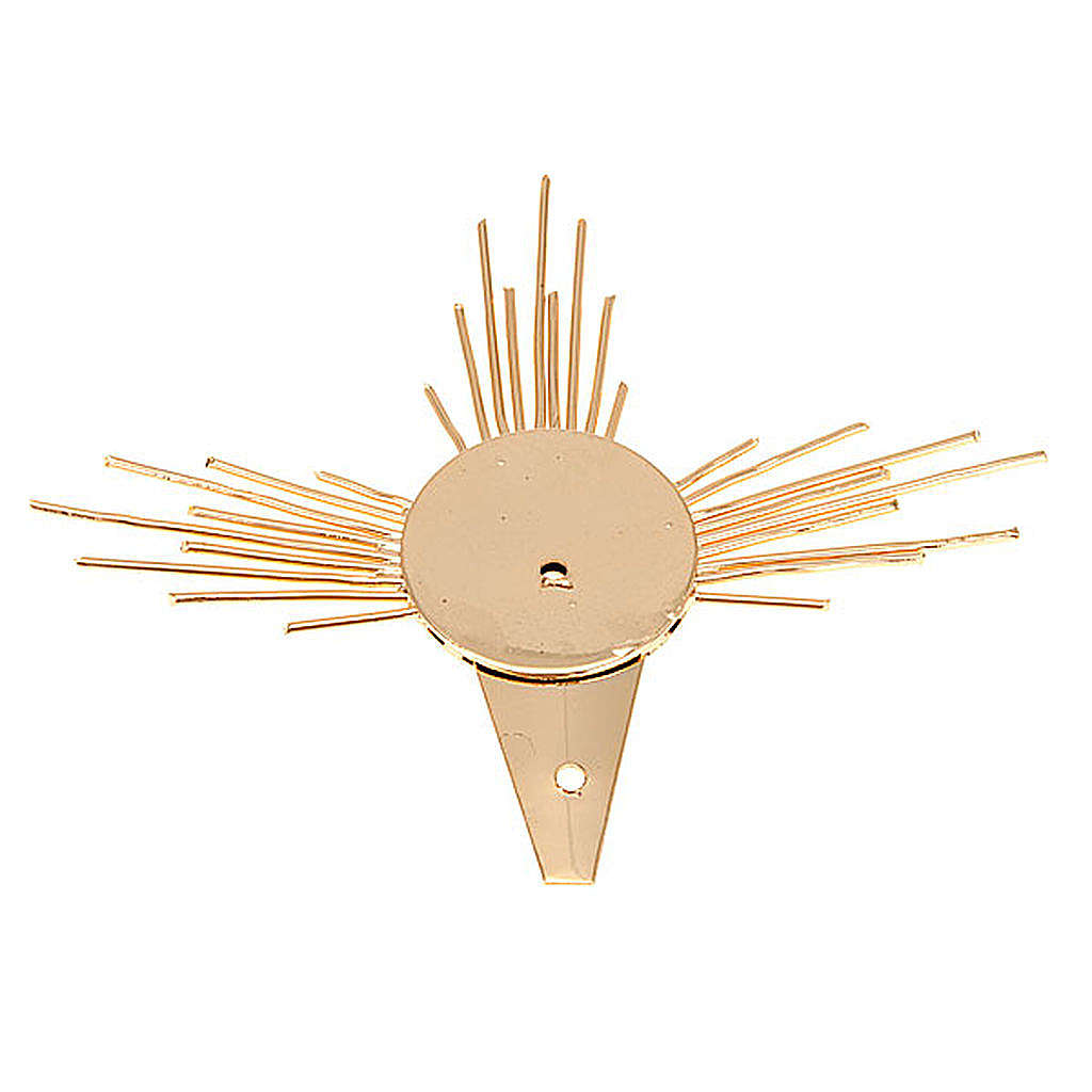 Auréole à rayons pour statues des saints faite en filigrane de laiton doré.