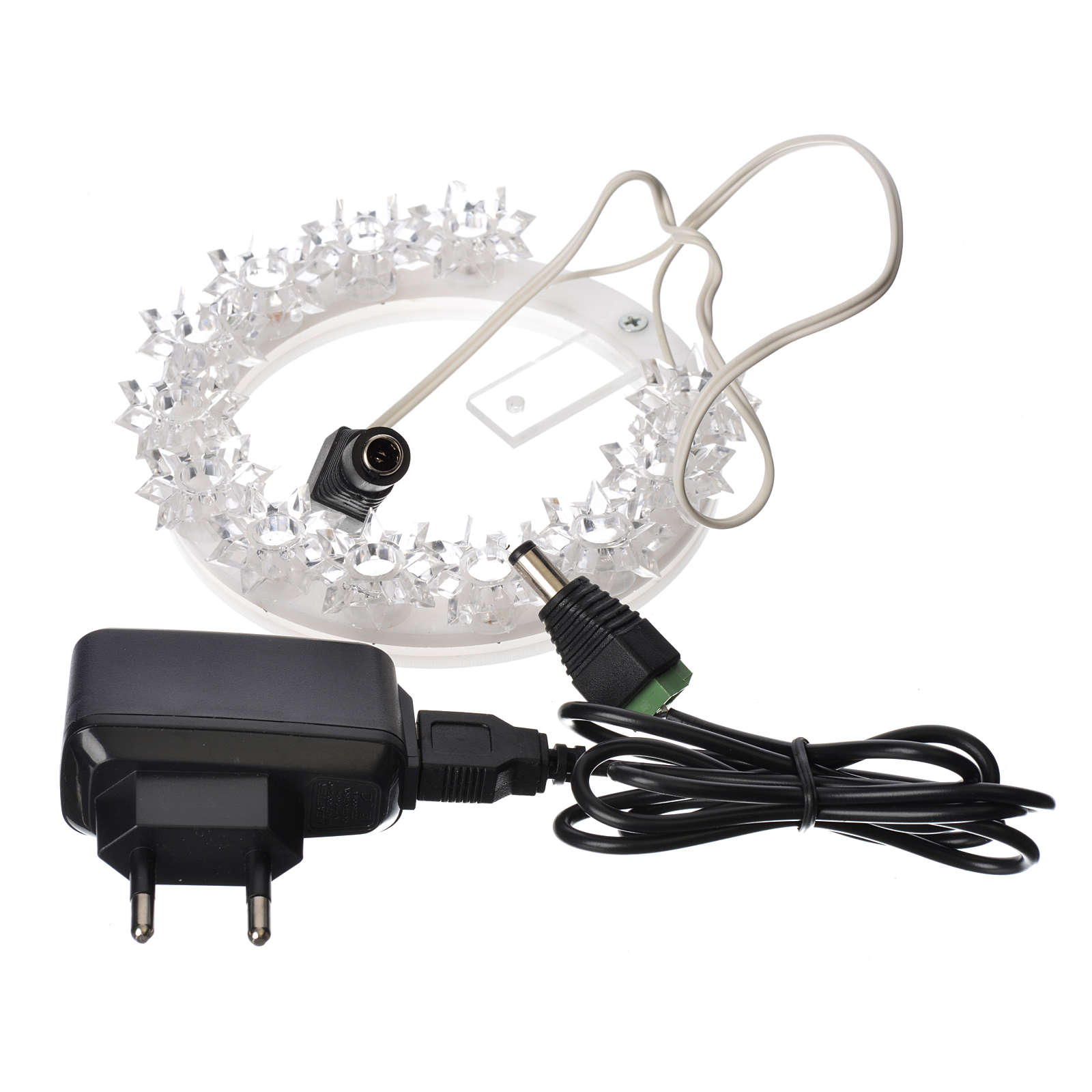 Disponibilité immédiate Auréole lumineuse en plexiglas fleurs leds bleus 10 cm. Auréole lumineuse en plexiglas de 10 cm de diamètre, décorée de 12 fleurs avec leds bleus clairs, entièrement faite main en Italie et finie dans chaque détail. Cette auréole pour statue est livrée avec transformateur de 220V à 24V.