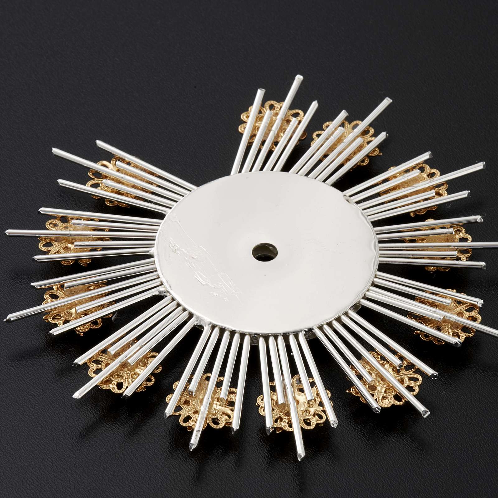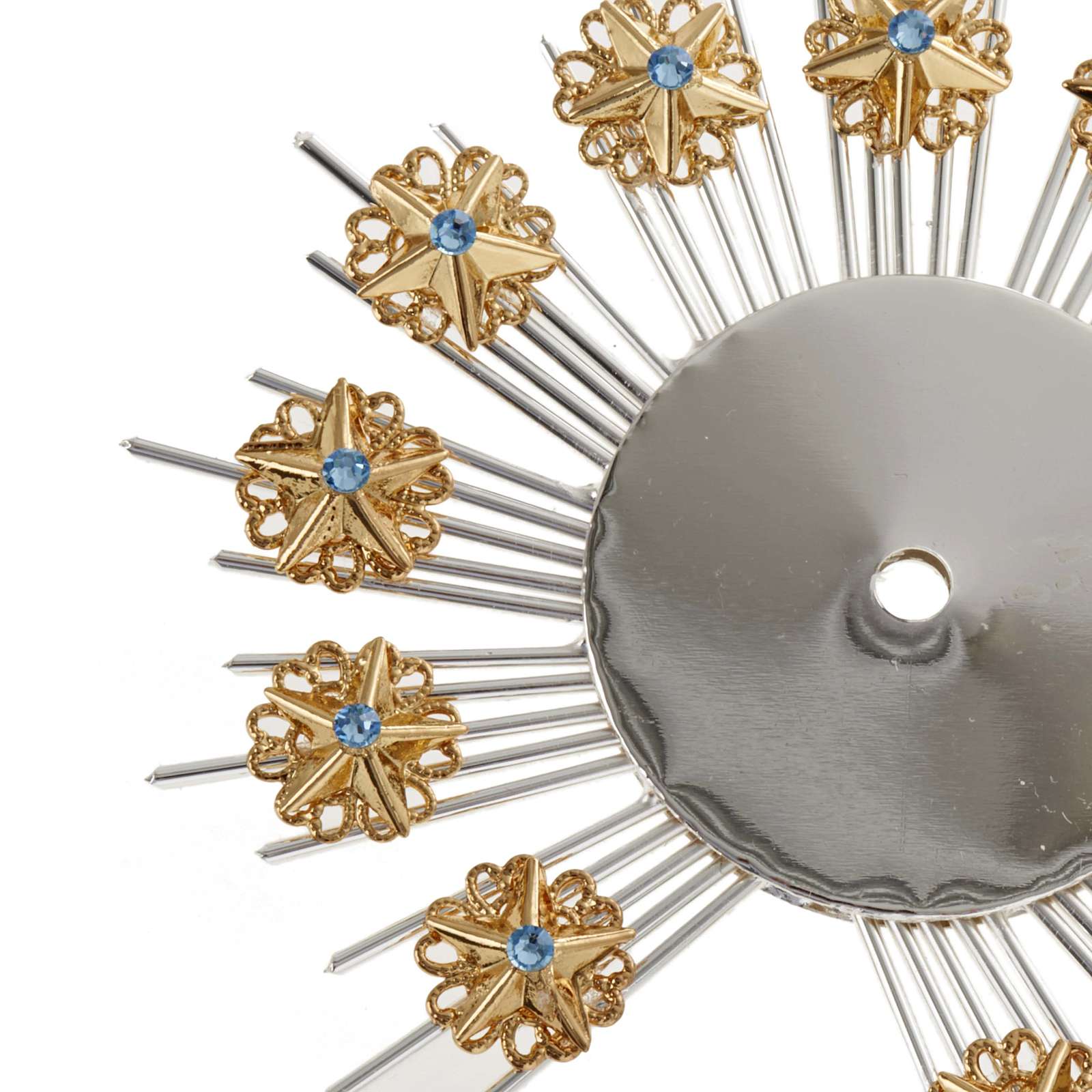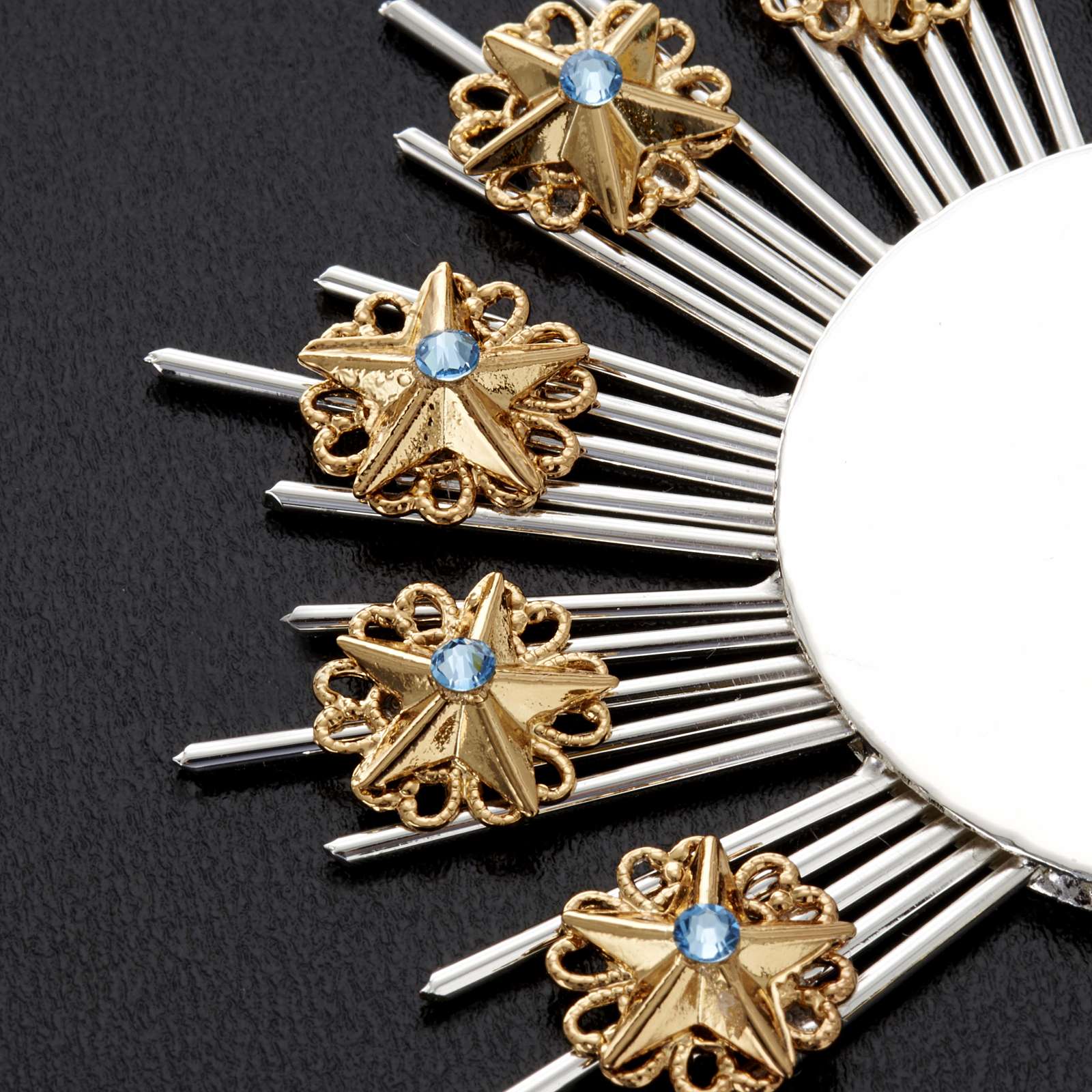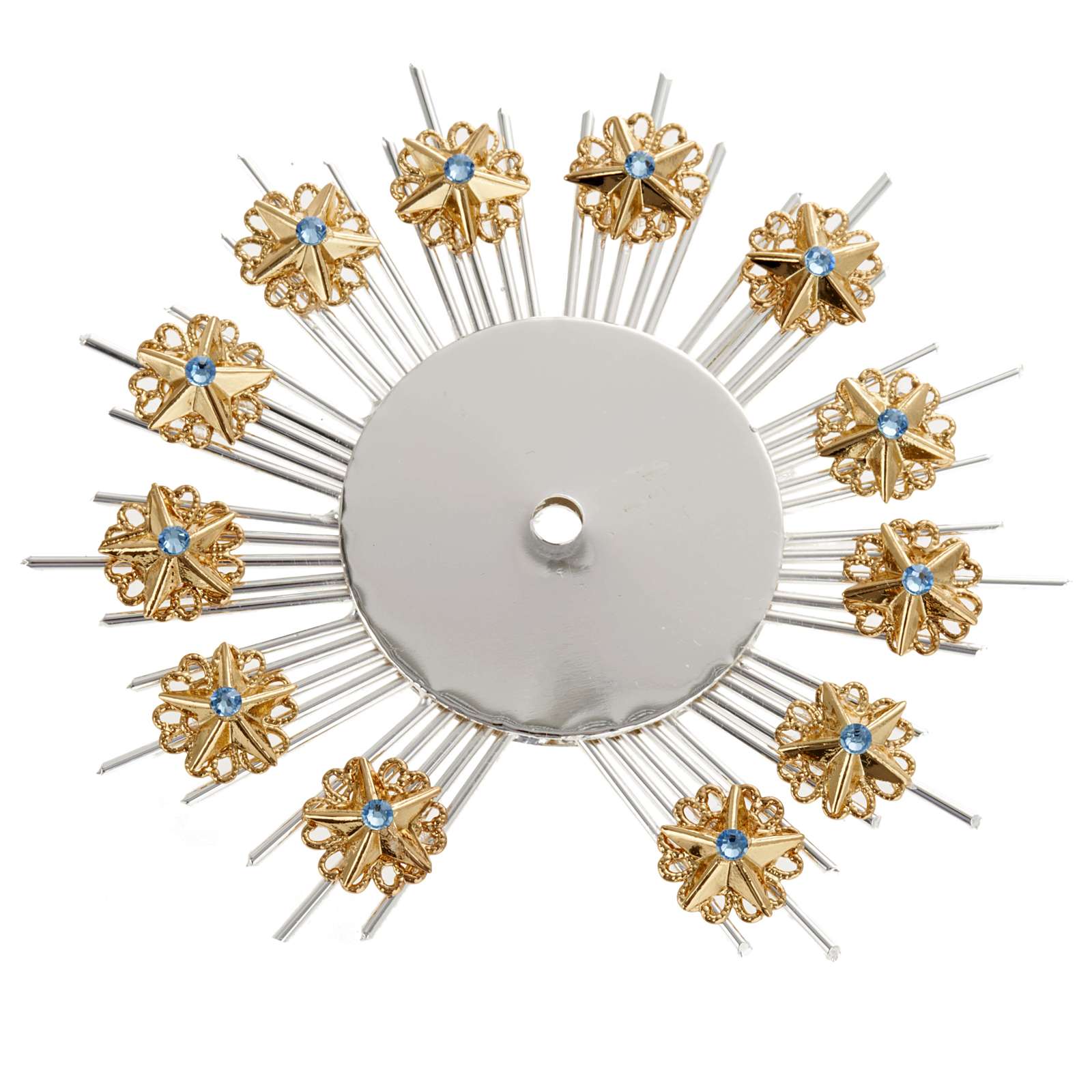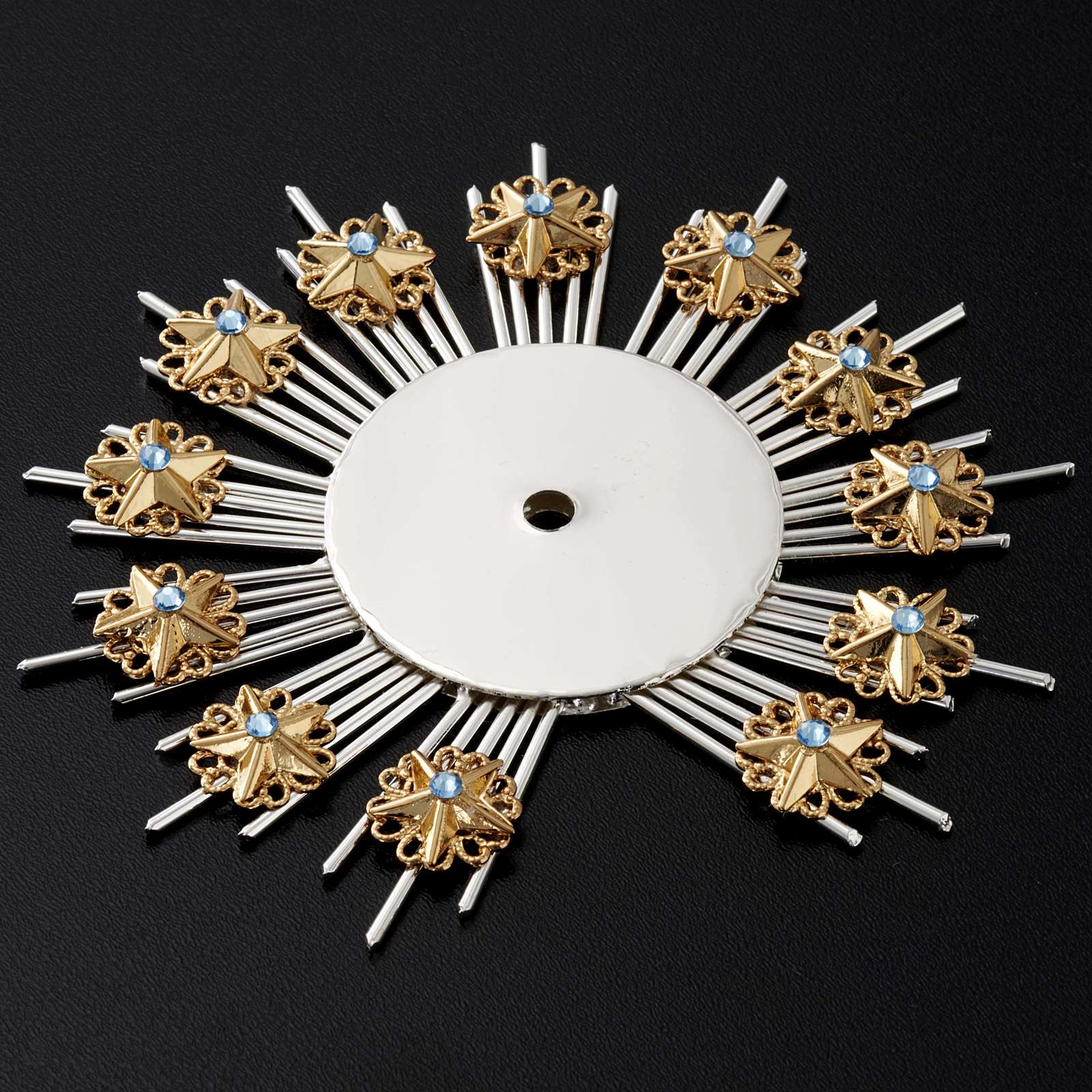 Couronne d'étoiles pour statues réalisée en filigrane de laiton dorée et argentée. Couronne d'étoiles réalisée de manière artisanale dans une usine Italienne. Disponible en différents diamètres.