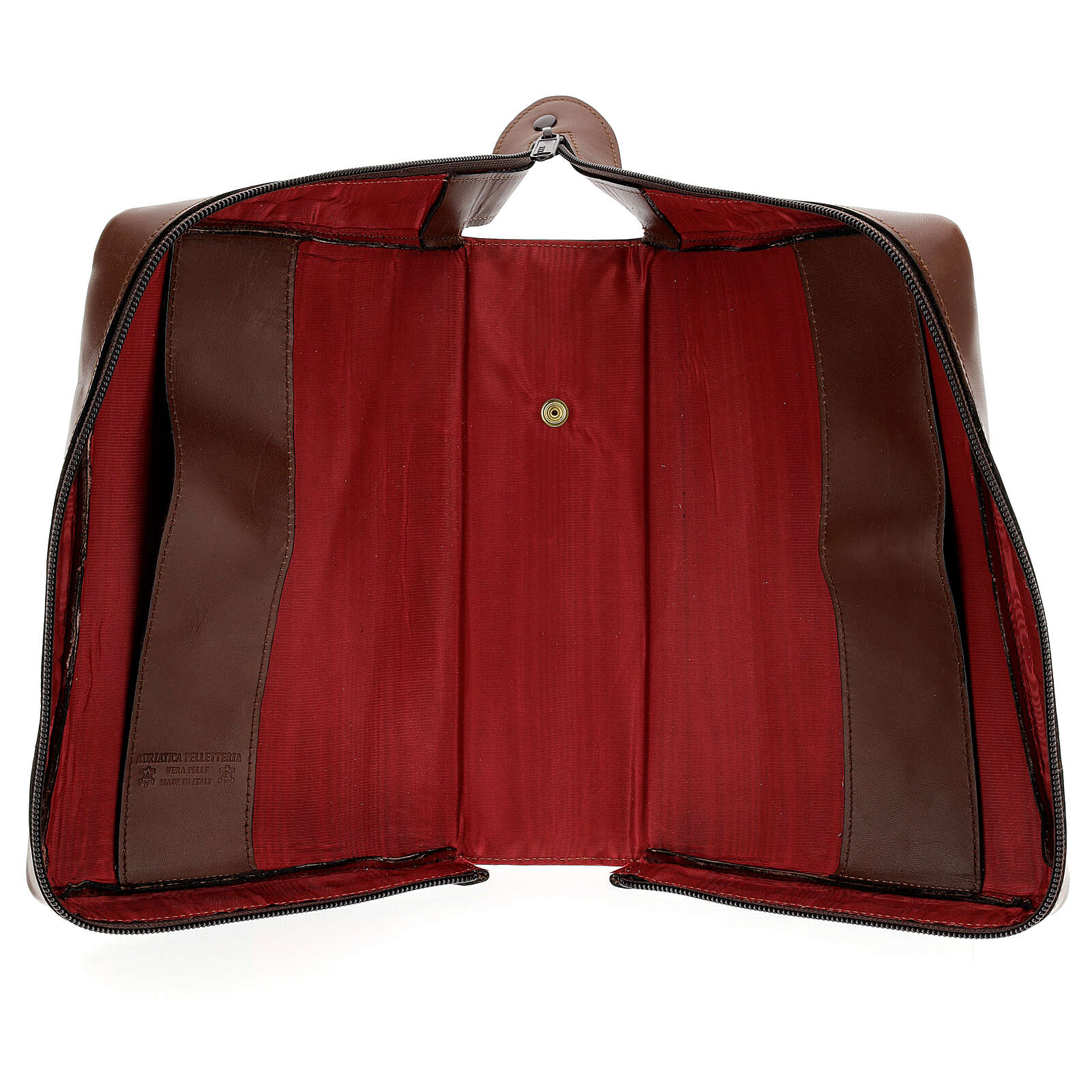 Couverture cuir véritable marron Nouvelle Bible San Paolo 2020. Couverture pour la nouvelle Bible San Paolo, édition 2020, entièrement réalisée à la main par des artisans italiens en cuir véritable marron avec élégante doublure et fermeture éclair.