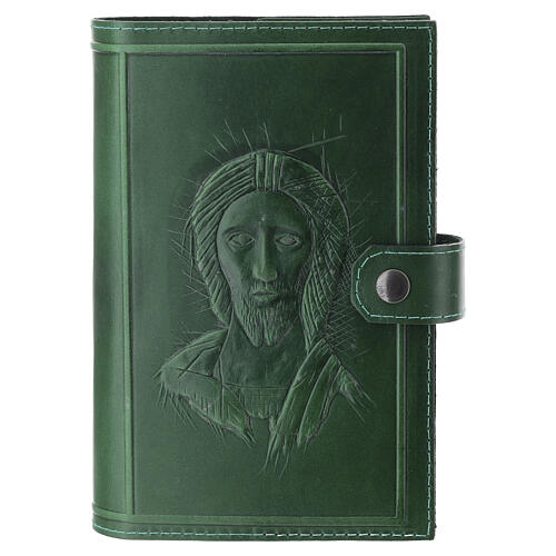Étui 4 vol. cuir véritable, visage du Christ vert