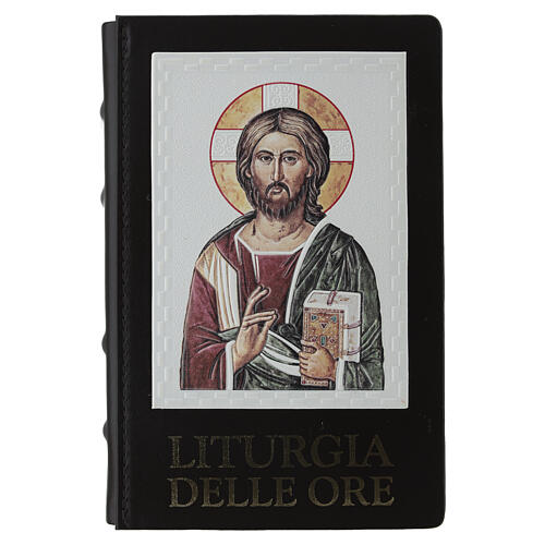 Etui pour liturgie des heures en cuir doux. Image du Christ Pantocarate. Disponible en noir à l'extérieur et alcantara et pourpre à l'intérieur. Garantie dans la boite.