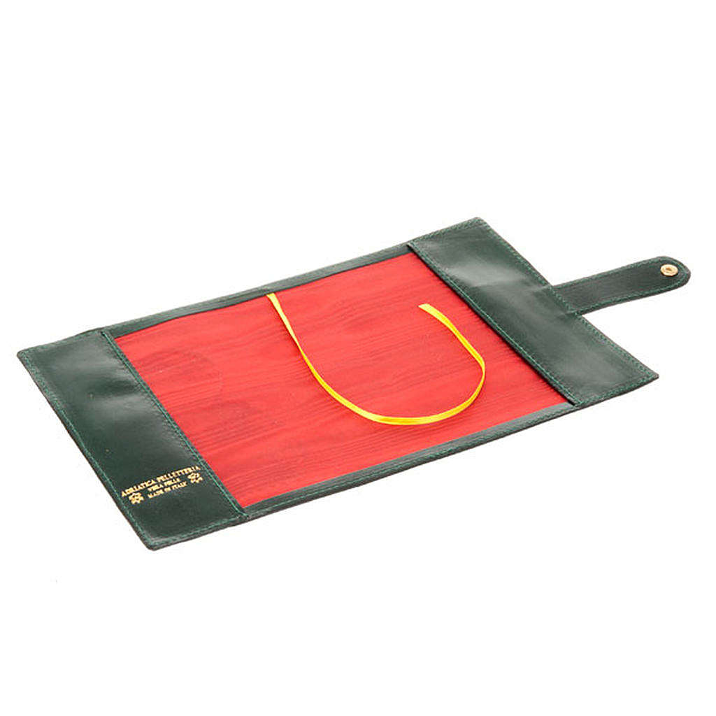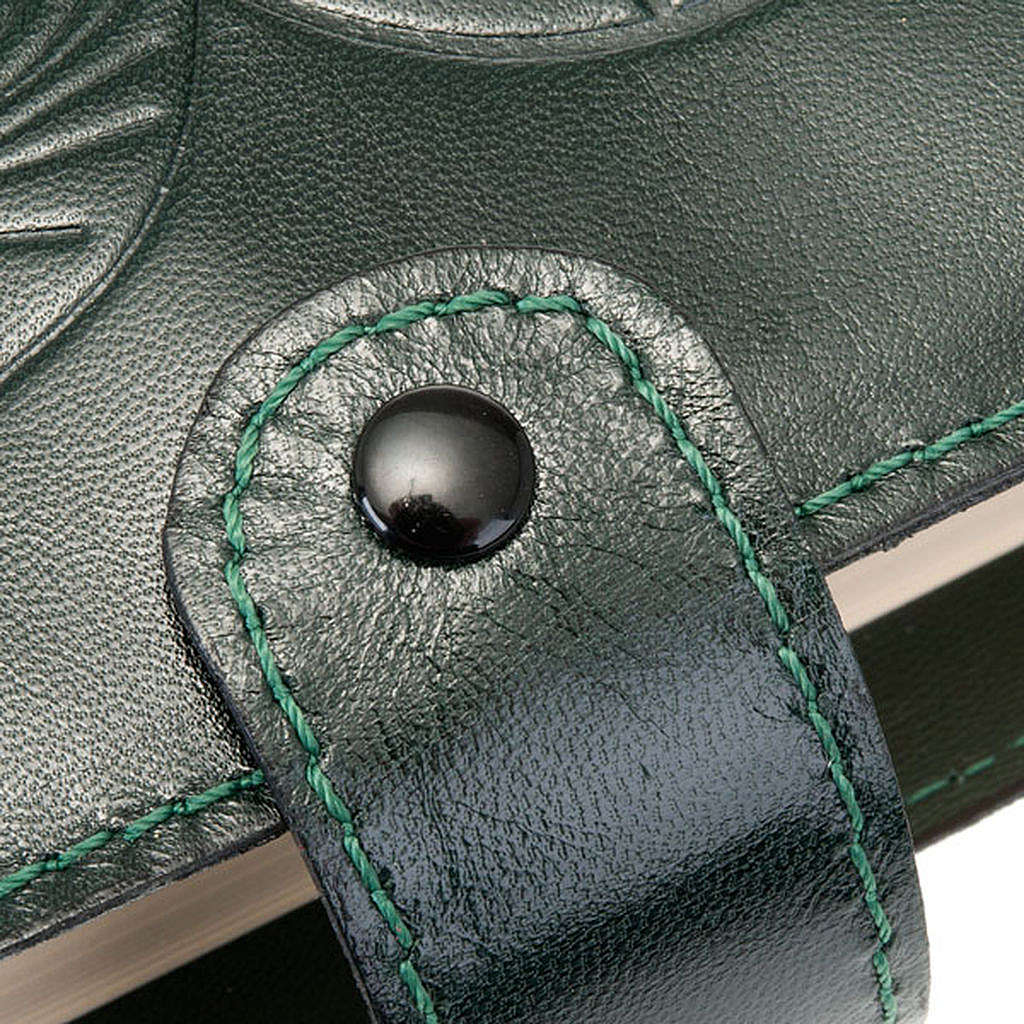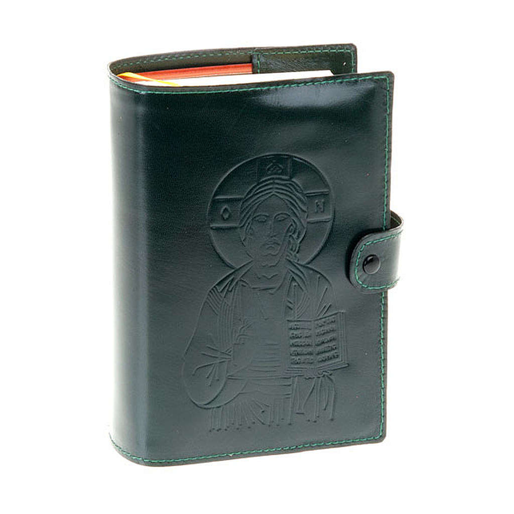 Couverture pour Volume Unique semi rigide, résistante en véritable cuir marron travaillé à la main avec un bouton pression pour la fermeture. Intérieur en doublure rouge et marque page jaune. Image du Christ imprimée sur le devant selon la technique à chaud.