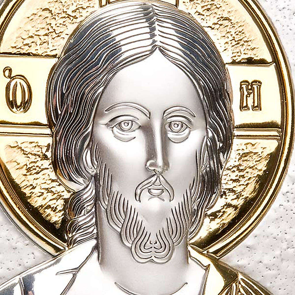 Couverture pour Bible Jérusalem avec plaque en argent et or représentant Jésus . En cuir, réalisée à la main, résistante, revêtue à l'intérieur avec bouton pour fermeture. L'image imprimée sur le devant de la couverture. couleur beige avec décoration visible. La décoration est réalisée à la main.