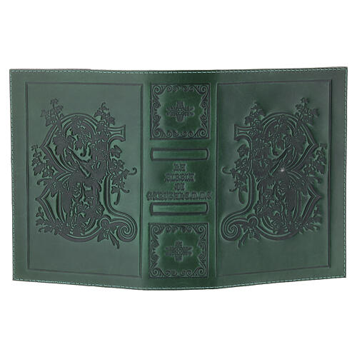 Etui pour Bible vert avec décors en cuir véritable.