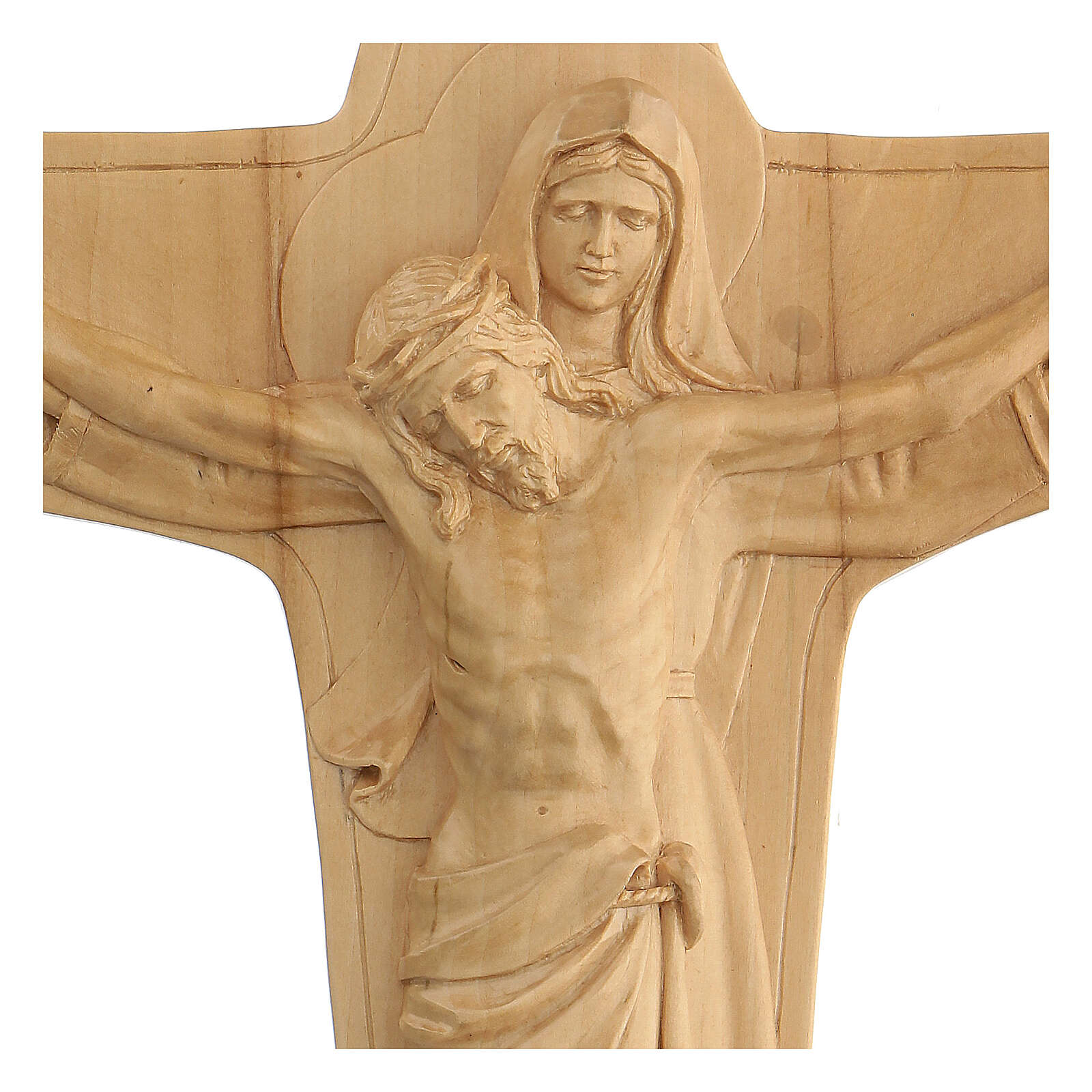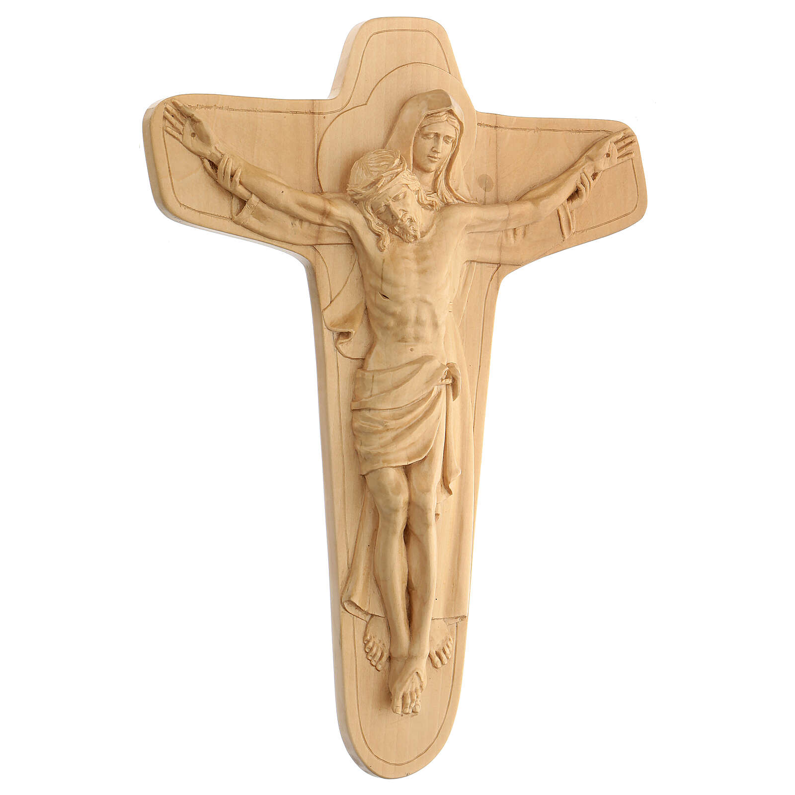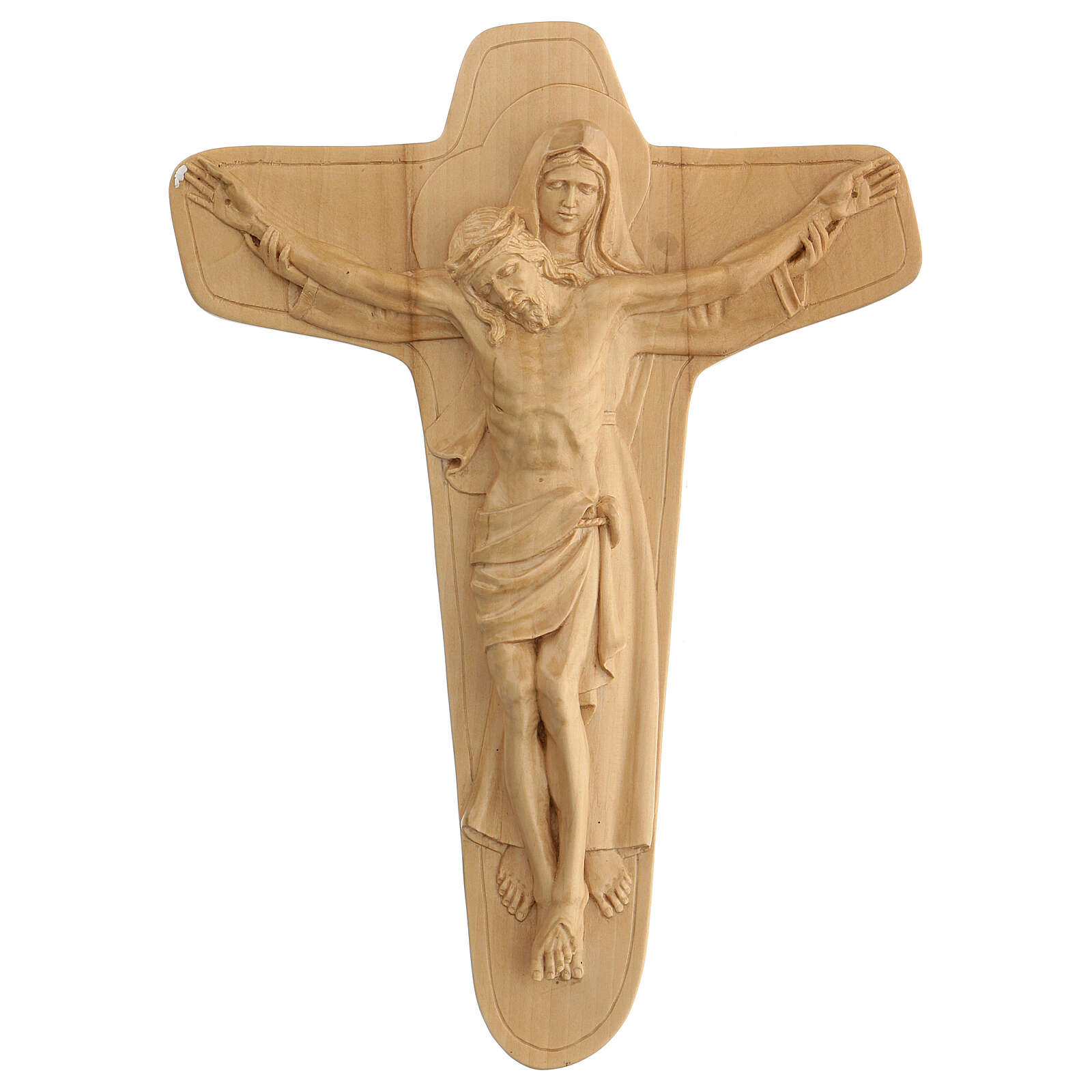 Crucifix en bois Vierge soutenant Jésus 35x24x4 cm Mato Grosso. Crucifix en hêtre blanc (lenga), sculpté à la main par des artisans péruviens, représentant la Vierge qui soutient le corps de Christ sur la croix.