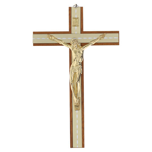 Crucifix mural en acajou, inserts dorés, Christ doré 30 cm