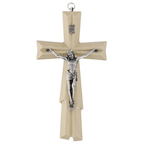 Crucifix mural en bois de charme avec Christ en métal 20 cm