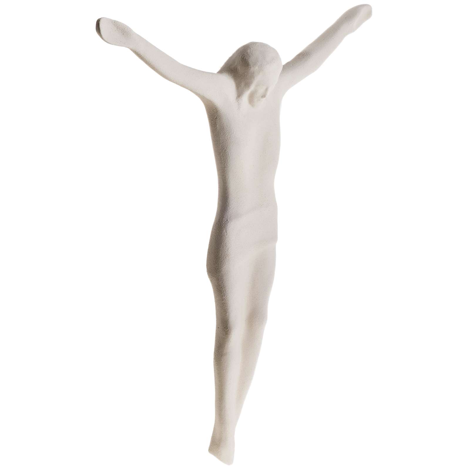 Corp de Christ stylisé en argile réfractaire de 44 cm d'hauteur. Le corps de Christ est réalisé à la main en Italie en argile réfractaire blanche. Il est moulé et après cuit à plus de 1000°C. Le travail et la décoration de ce produit sont complètement réalisés à la main pour lui donner des lignes agréables et élégantes. Produit d'haute qualité de l'atelier Ave de Loppiano (Florance).
