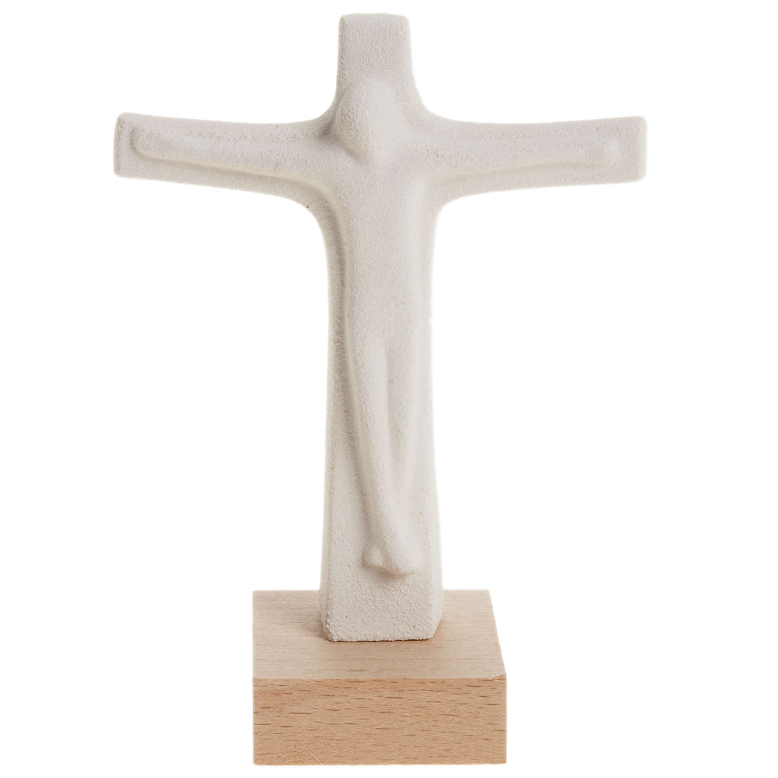 Disponibilité immédiate Crucifix pour table en argile réfractaire blanche et base en bois clair. Le crucifix est réalisé à la main en Italie en argile réfractaire blanche. Il est moulé et après cuit à plus de 1000°C. Le travail et la décoration de ce crucifix sont complètement réalisés à la main pour lui donner des lignes agréables et élégantes. Produit d'haute qualité de l'atelier Ave de Loppiano (Florance).