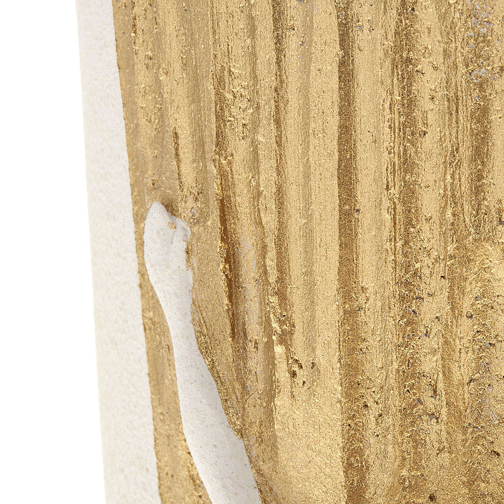 Crucifix rayons couleur or en argile réfractaire blanche. Le crucifix est réalisé à la main en Italie en argile réfractaire blanche et peinture dorée en poudre. L'argile est moulée à la main et après cuite à plus de 1000°C. Le travail et la décoration de ce crucifix sont complètement réalisés à la main pour lui donner des lignes agréables et sobres. Produit d'haute qualité de l'atelier Ave de Loppiano (Florance).