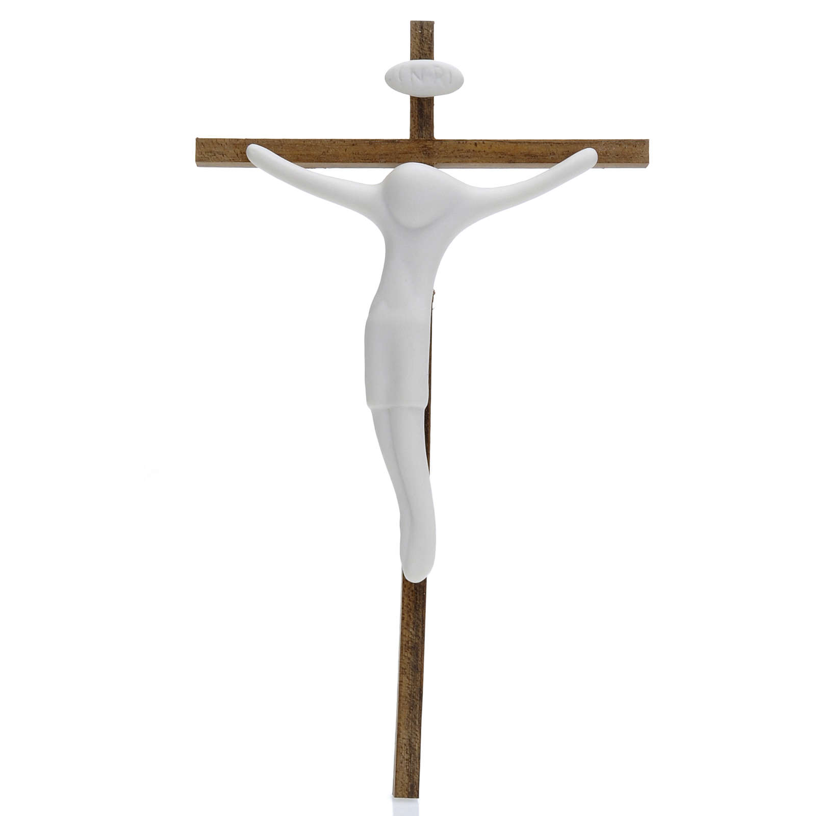 Crucifix, croix en bois et base en porcelaine, blanc. Modèle simple et élégant.