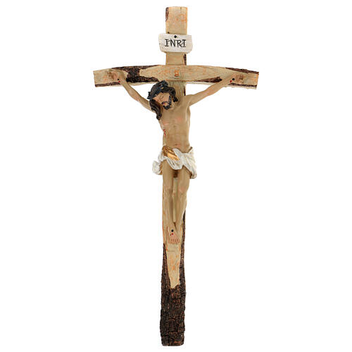 Crucifix mural résine 40x18 cm. Crucifix mural finement travaillé avec une grande attention pour les détails, comme l'effet bois avec ou sans écorce, entièrement réalisé en résine.