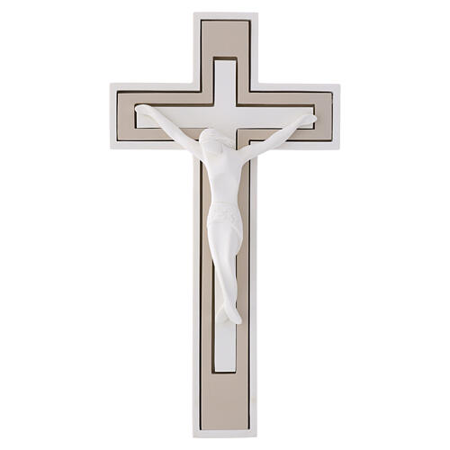 Crucifix mural taupe avec Christ blanc mat 25x15 cm