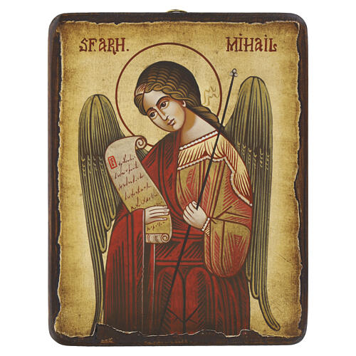 Icône Roumanie Archange Michel peinte à la main 18x14 cm style patiné