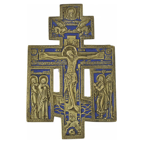 Crucifix orthodoxe russe ancien en bronze XIXe siècle 16x10 cm.