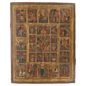 Icône ancienne 16 grandes fêtes et cycle de la Passion XIXe siècle 44x34 cm Russie