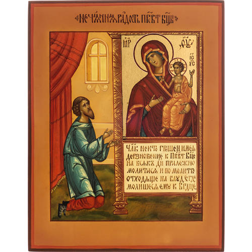 La mère de Dieu est une icône peinte à la main selon les traditions de l'iconographie russe, une des vierges les plus vénérée au monde. Elle est peinte à la main selon une histoire du cardinal Rostov Dimitrij, l'écriture à la base de l'image est le début de la narration. Un jour les plaies de Jésus commencèrent à saigner devant un homme qui confessait ses péchés, la Vierge lui concéda le pardon. Fournie de certificat d'origine.
