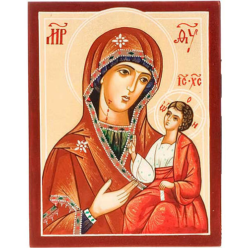 La Vierge Mère de Dieu Odighitria Iverskaja est une icône peinte à la main selon les traditions de l'iconographie russe, une des vierges les plus vénérée au monde. Il s'agit d'une copie de la Vierge vénérée sur le mont Athos en Grèce. Accompagnée de certificat d'origine et boîte en cuir rouge.