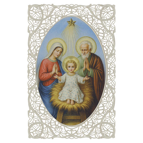 Image pieuse Sainte Famille avec l'Enfant Jésus 12x7 cm décor en dentelle