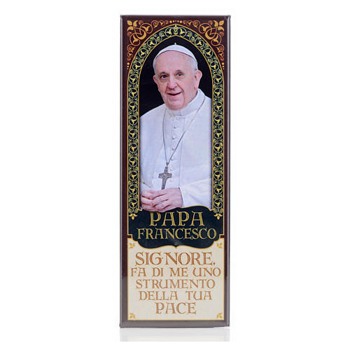 Aimant avec image du Pape François et sentence en italien 'seigneur fais de moi un instrument de ta paix'