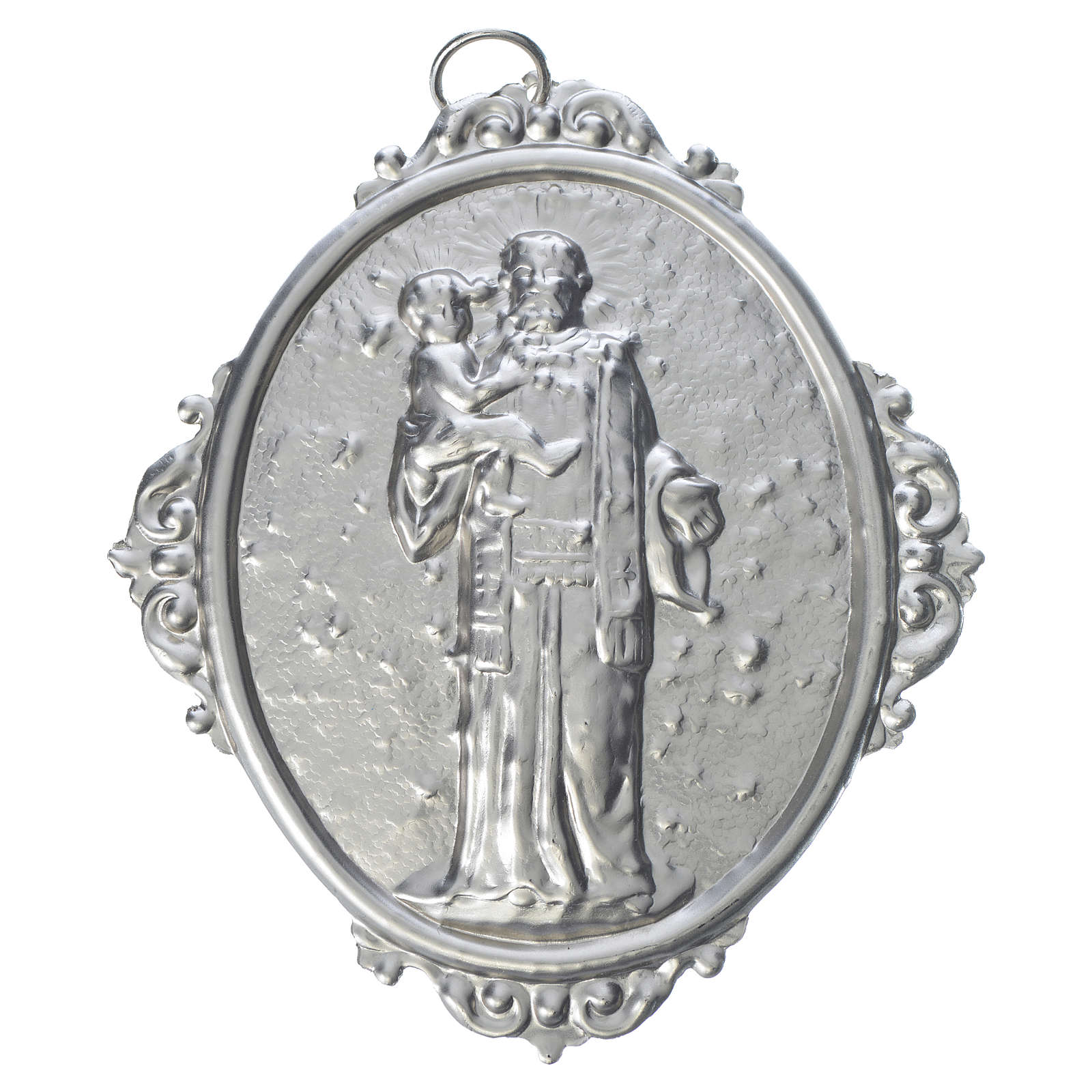 Médaille de confrérie St Antoine avec Enfant Jésus. Médaillon religieux pour confrérie représentant Saint Antoine avec l'Enfant Jésus sur les épaules.