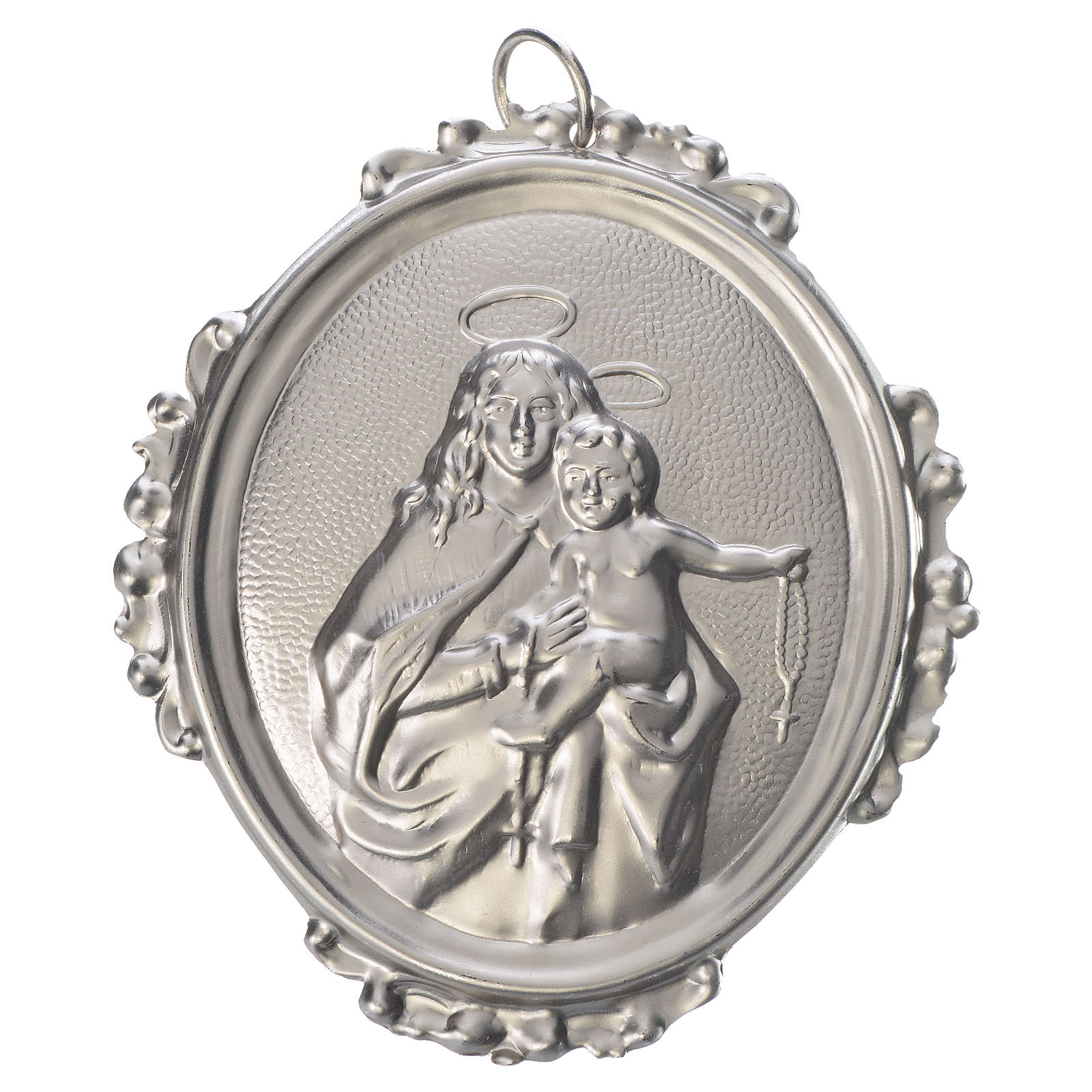 Médaillon de confrérie Notre-Dame du Rosaire laiton. Médaille religieuse pour confrérie avec représentation de Notre-Dame du Rosaire, dimensions 12x10 cm.