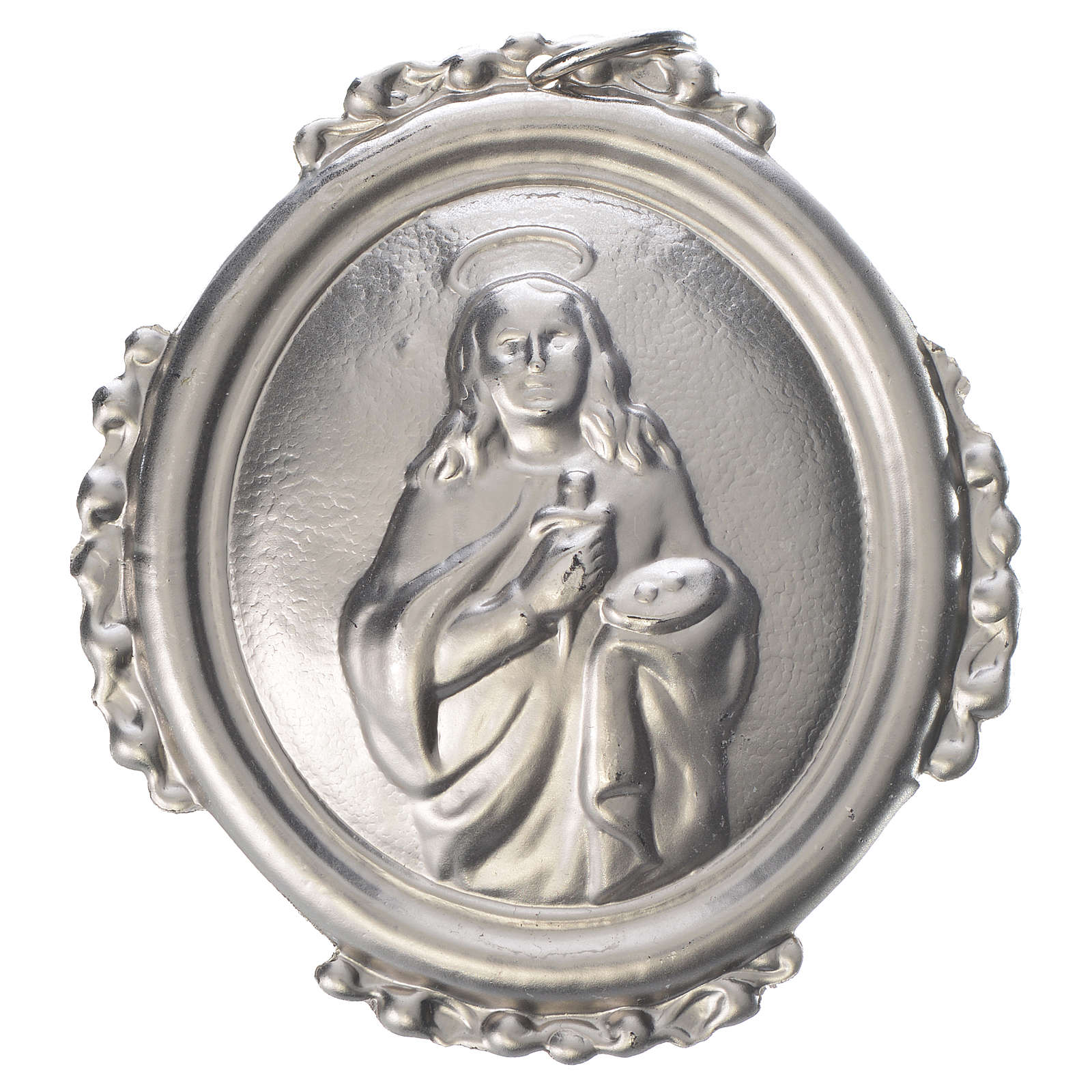 Médaillon de confrérie Sainte Lucie laiton. Médaille religieuse pour confrérie avec représentation de Sainte Lucie, dimensions 12x10 cm.