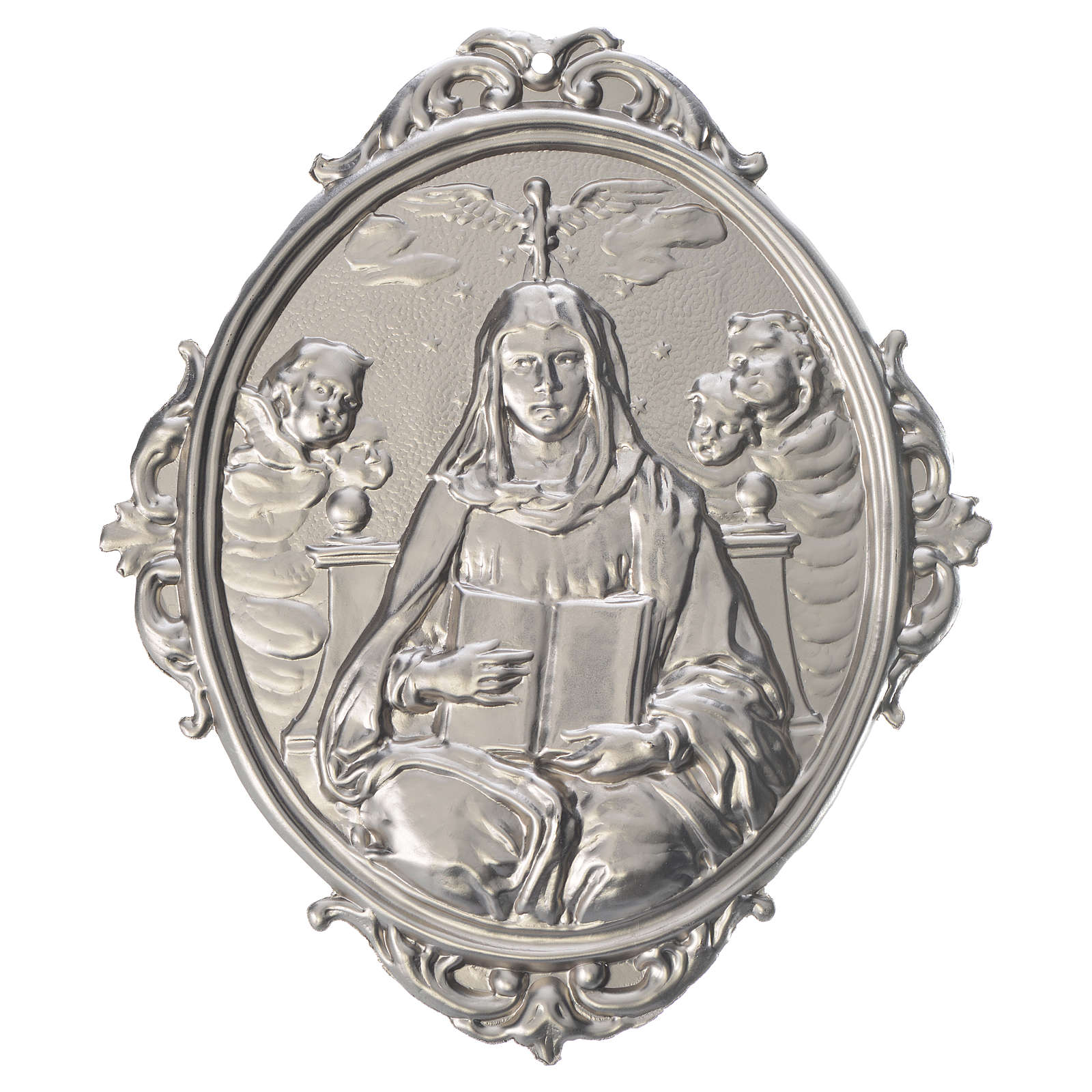 Médaillon Vierge avec livre, ostensoir et anges pour confrérie