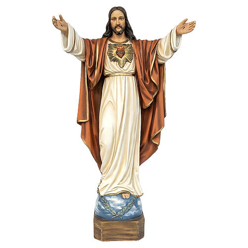 Statue Christ Rédempteur en marbre reconstitué de 100cm, statue peinte à la main. Statue finement travaillée et bien soignée dans tous les détails. Statue du Christ Rédempteur de haute qualité et très résistante, indiquée pour l'extérieur.