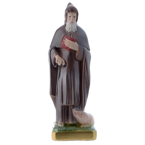 Saint Antoine Abbé 20 cm statue plâtre nacré. Statue de Saint Antoine d'Égypte en plâtre peint à la main avec finition nacrée, réalisée par un artisan italien.