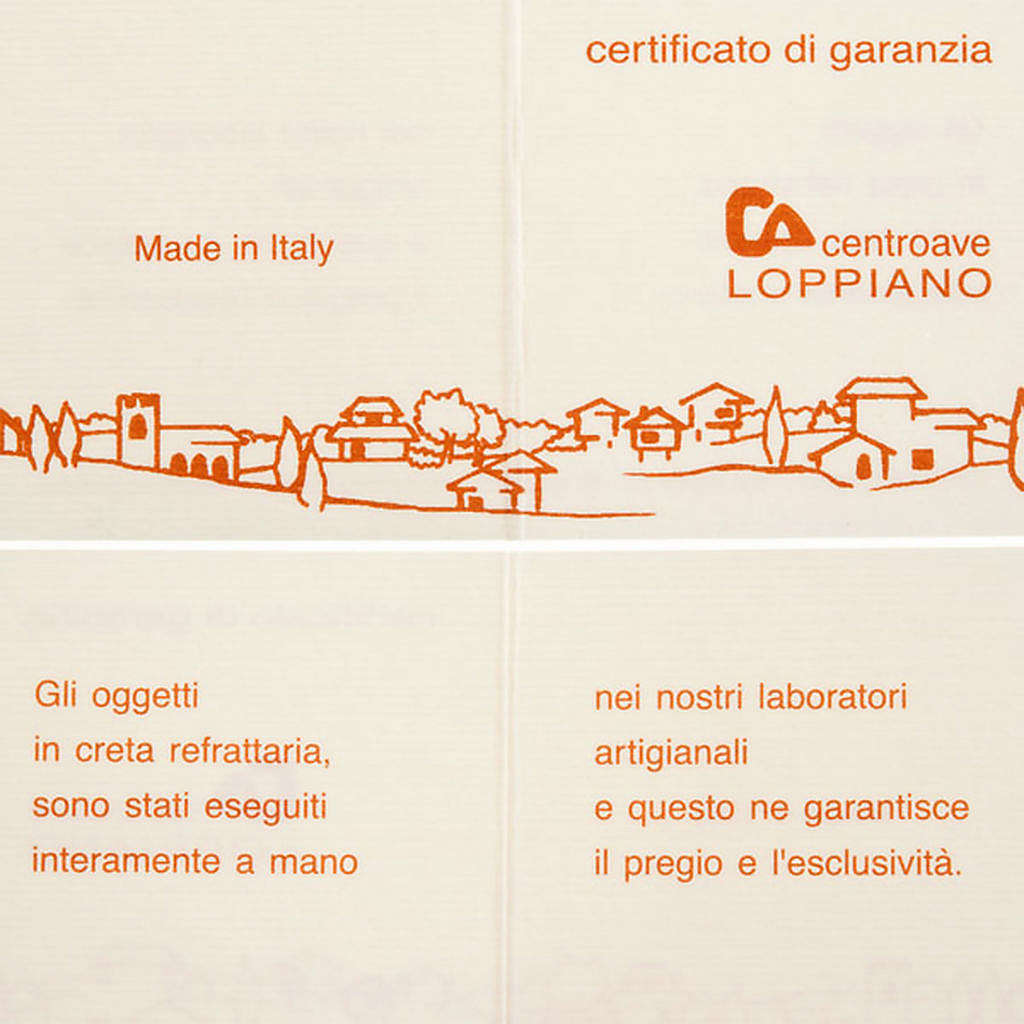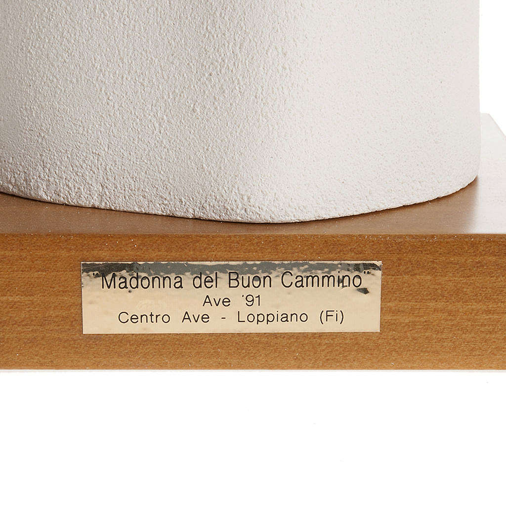 Vierge du bon chemin, statue en argile réfractaire avec base en bois. La statue est moulée et après cuite à plus de 1000°C. Le travail et la décoration de cette statue sont complètement réalisés à la main pour lui donner des traits agréables et élégants. Produit d'haute qualité de l'artisanat italien.