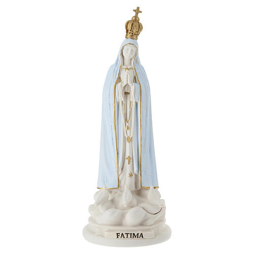 Statue Notre-Dame de Fatima en résine avec couronne dorée et colombes 30 cm.