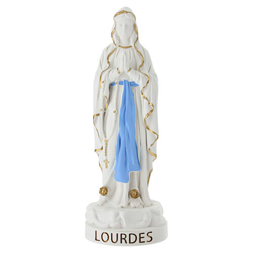 Statue Notre-Dame de Lourdes résine robe blanche ceinture céleste 30 cm
