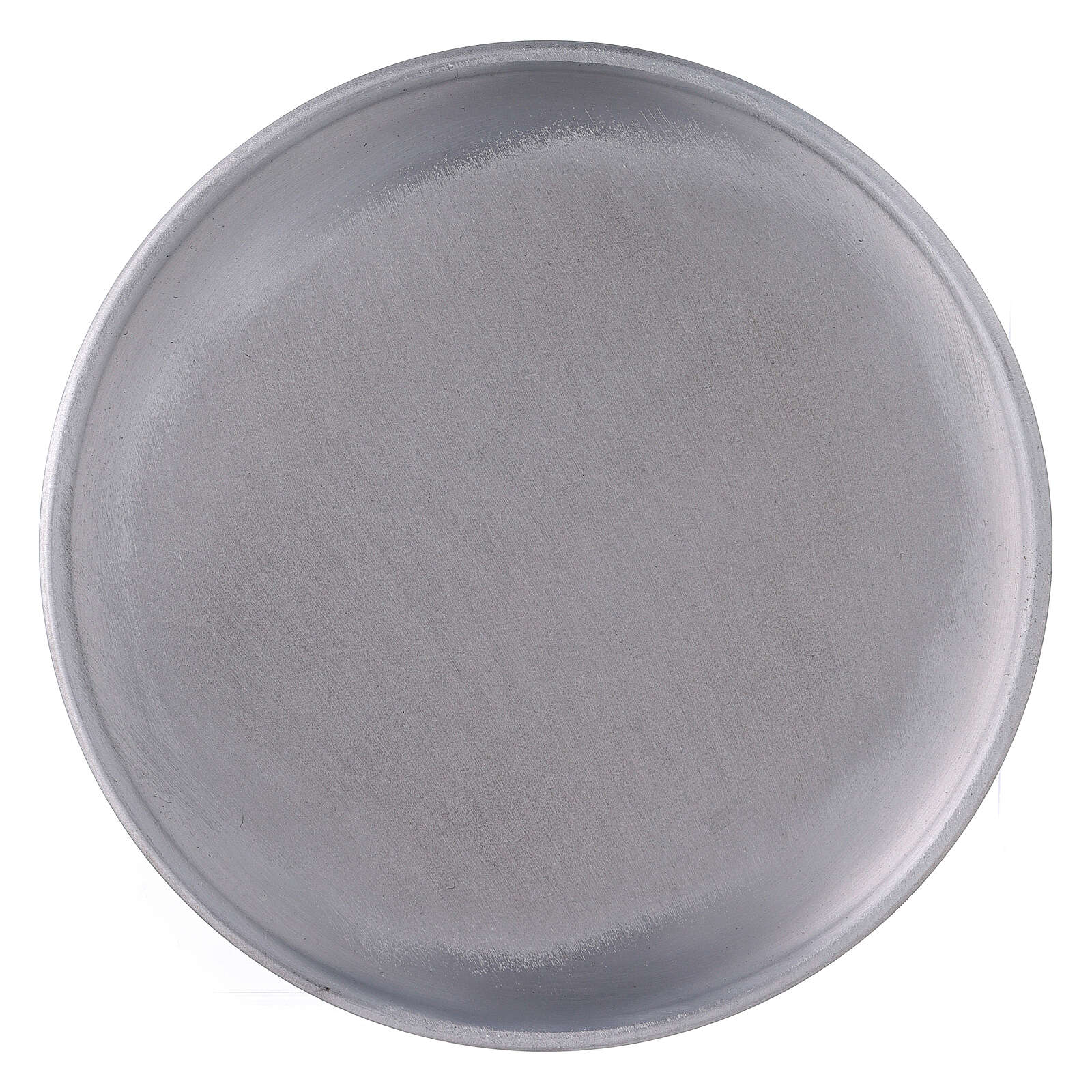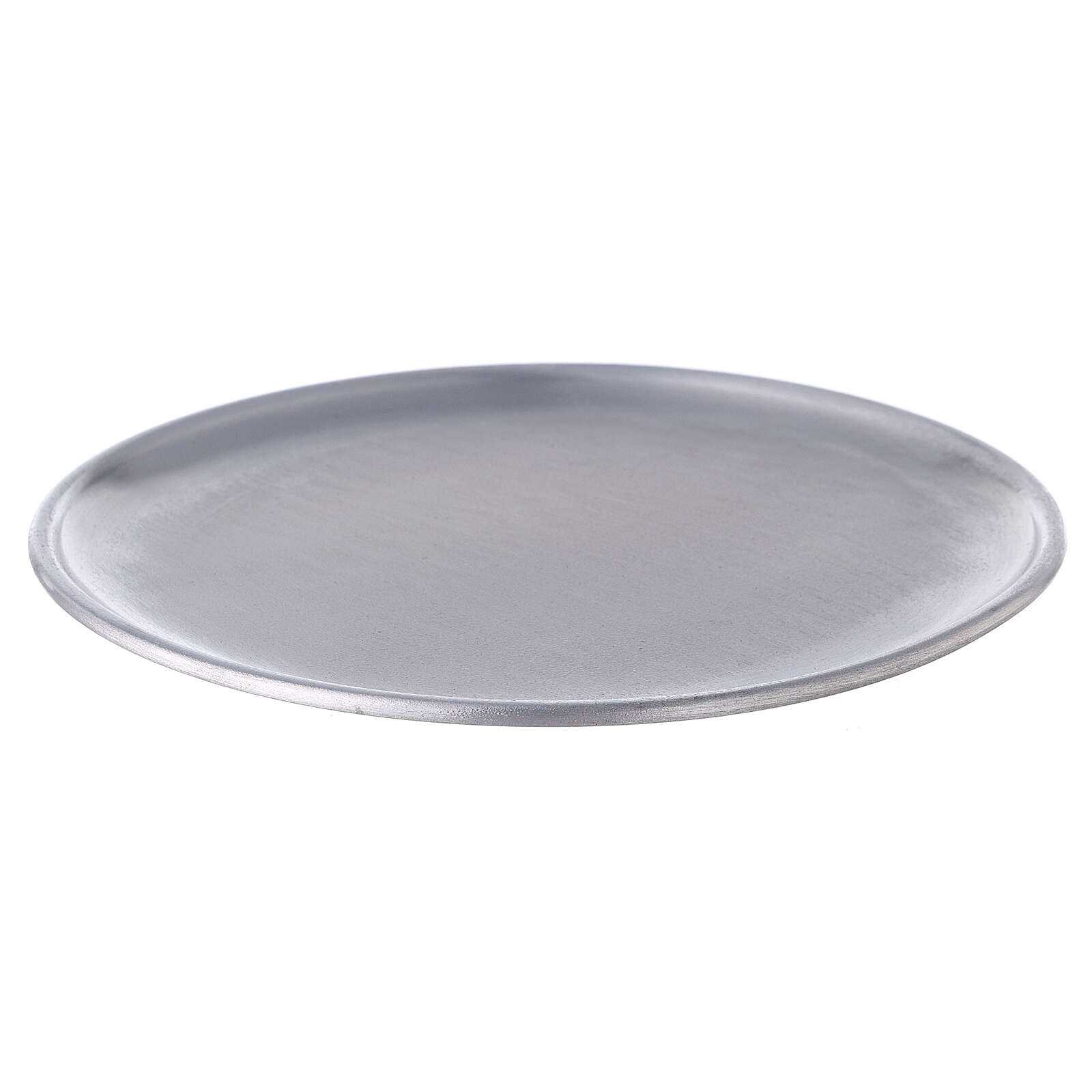 Bougeoir assiette aluminium 17 cm pieds. Assiette porte-bougie réalisée en aluminium satiné de 17 cm de diamètre avec pieds pour protéger les surfaces délicates.