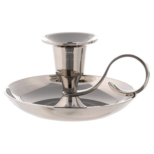 Bougeoir avec poignée hauteur 5 cm. Bougeoir en laiton argenté avec poignée, diamètre et hauteur de 5 cm, pouvant contenir une bougie de 2 cm de diamètre.