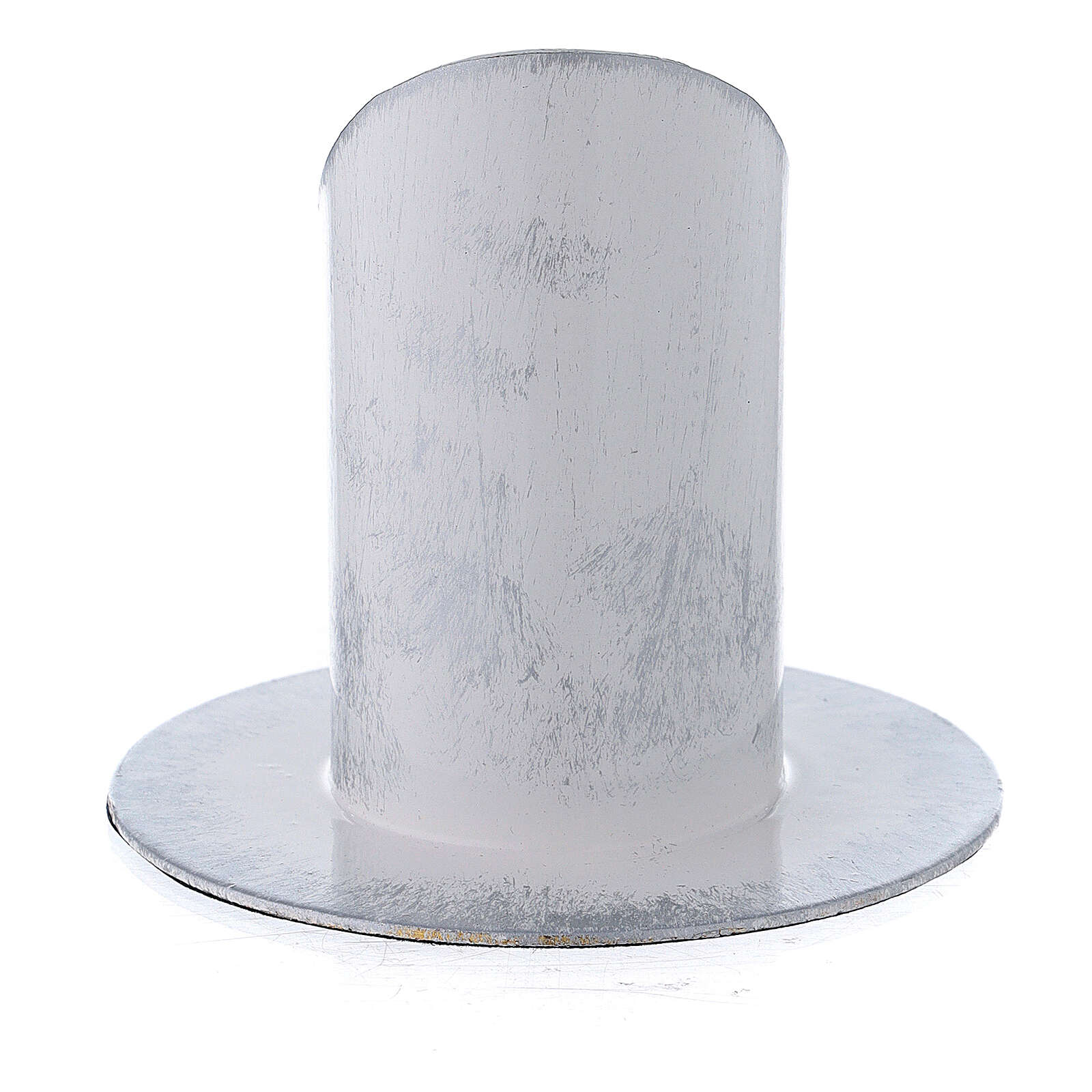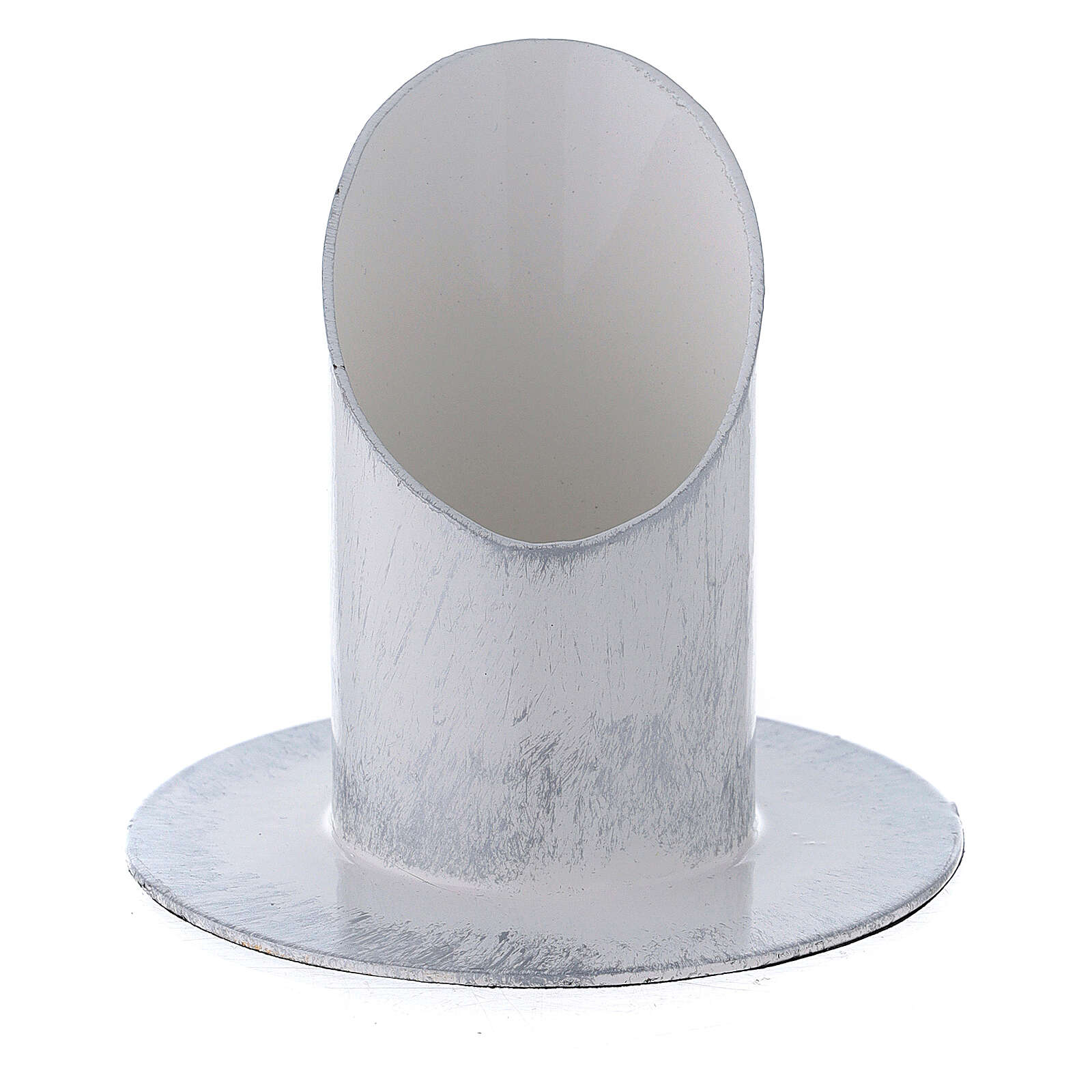 Bougeoir blanc argent fer 4 cm. Bougeoir avec bocal oblique réalisé en fer peint en blanc avec détails argentés.