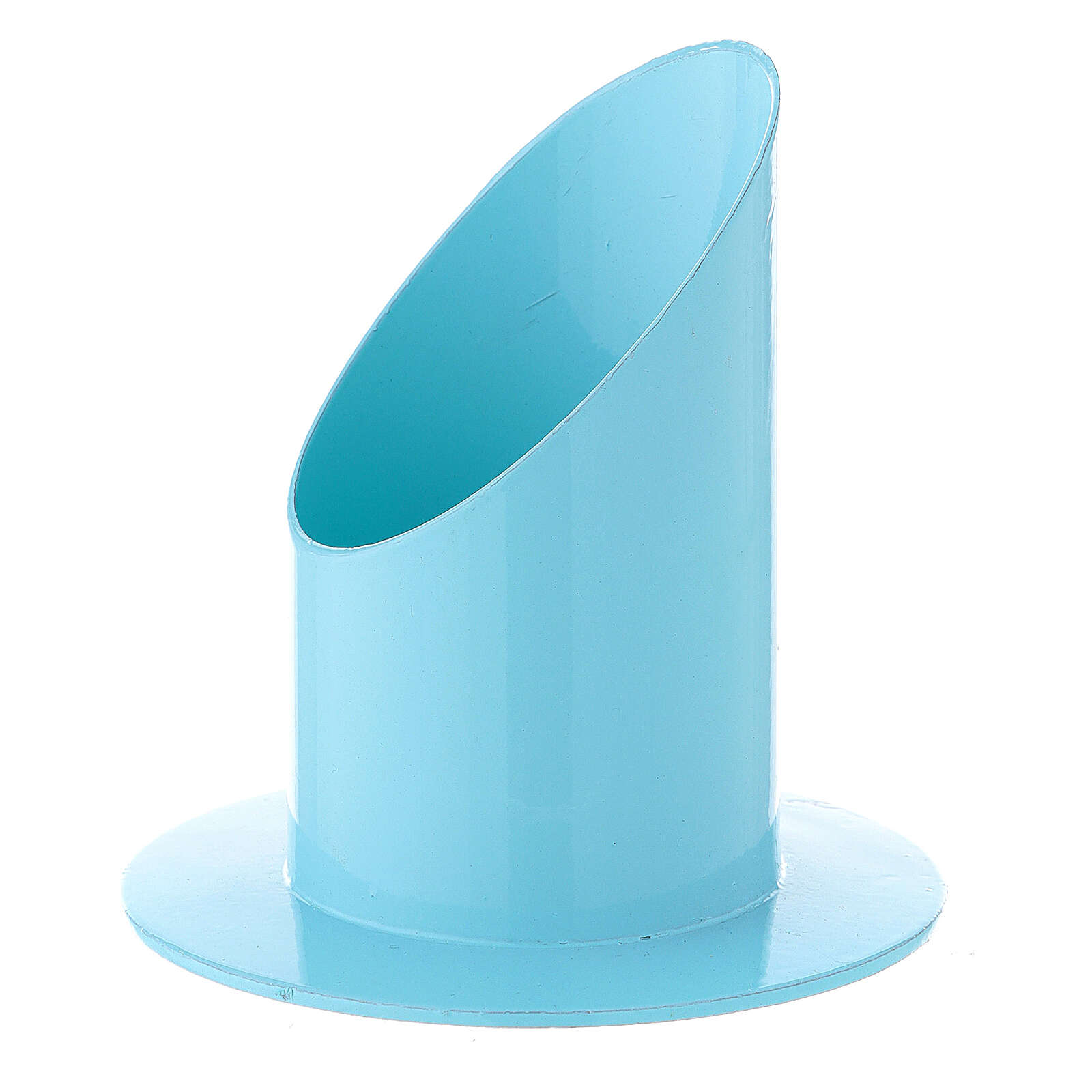 Bougeoir bleu clair fer 5 cm. Bougeoir en fer avec bocal de coupe oblique à la délicate couleur bleu clair.