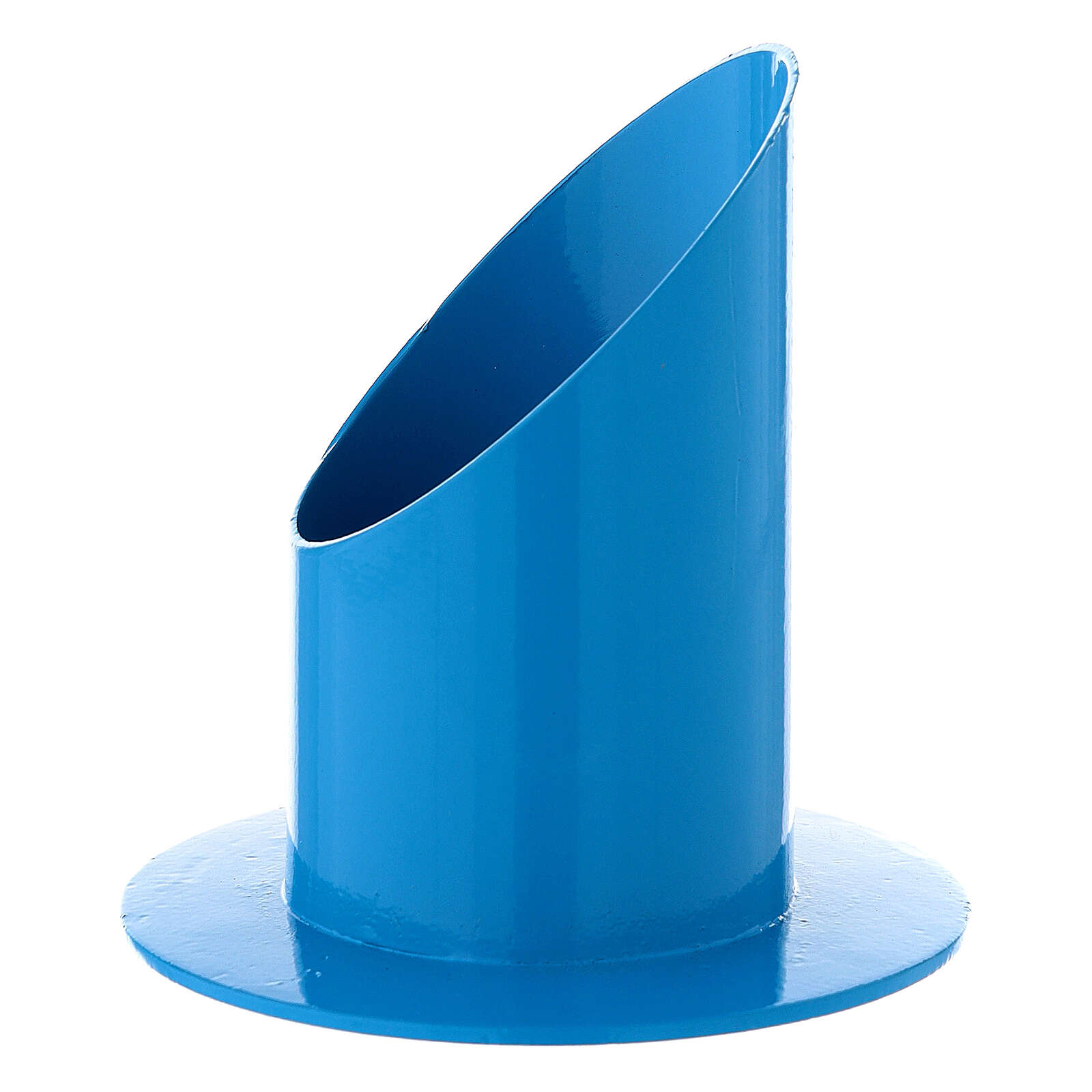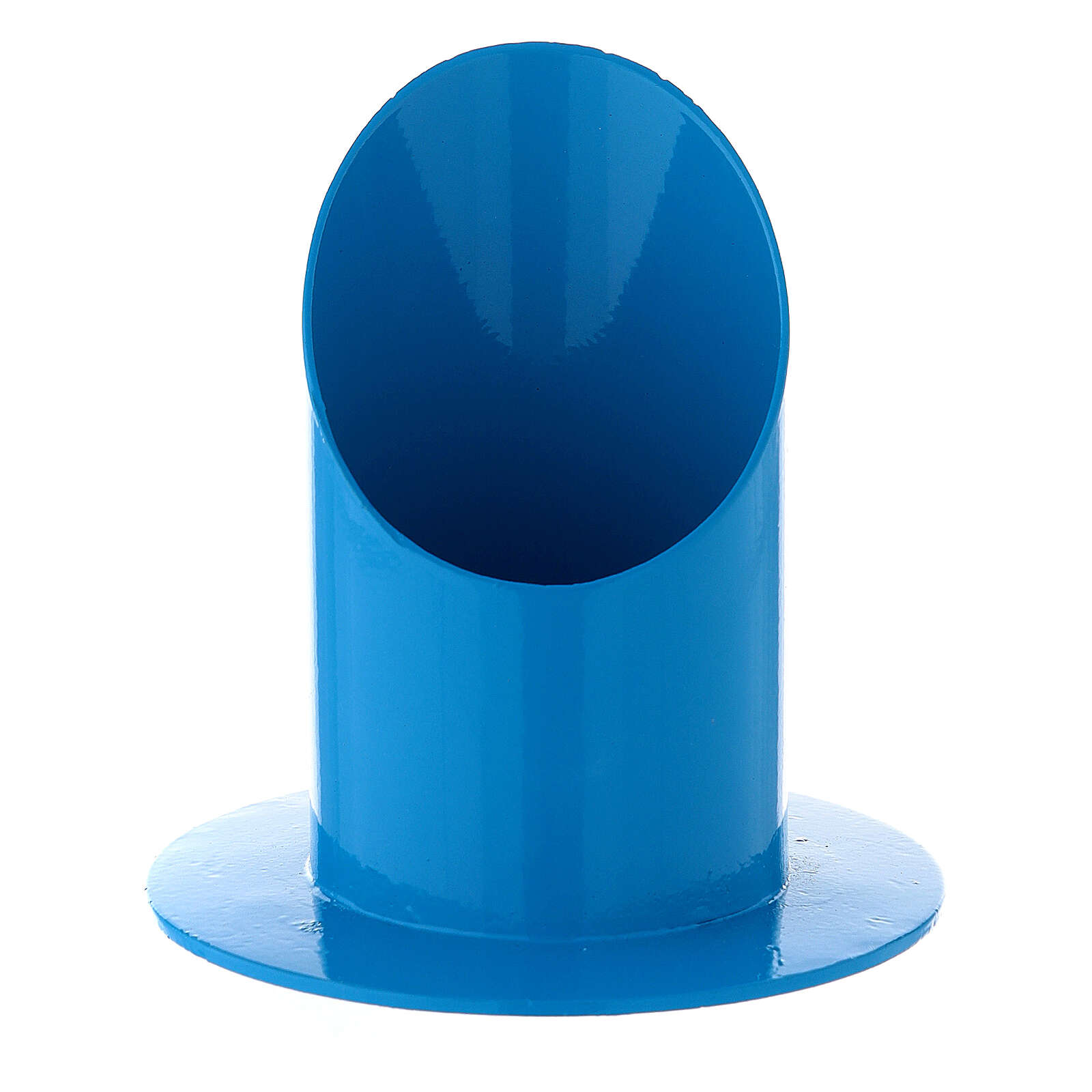 Bougeoir bleu électrique 5 cm fer. Bougeoir en fer verni couleur bleu électrique avec bocal de coupe oblique de 5 cm de diamètre.